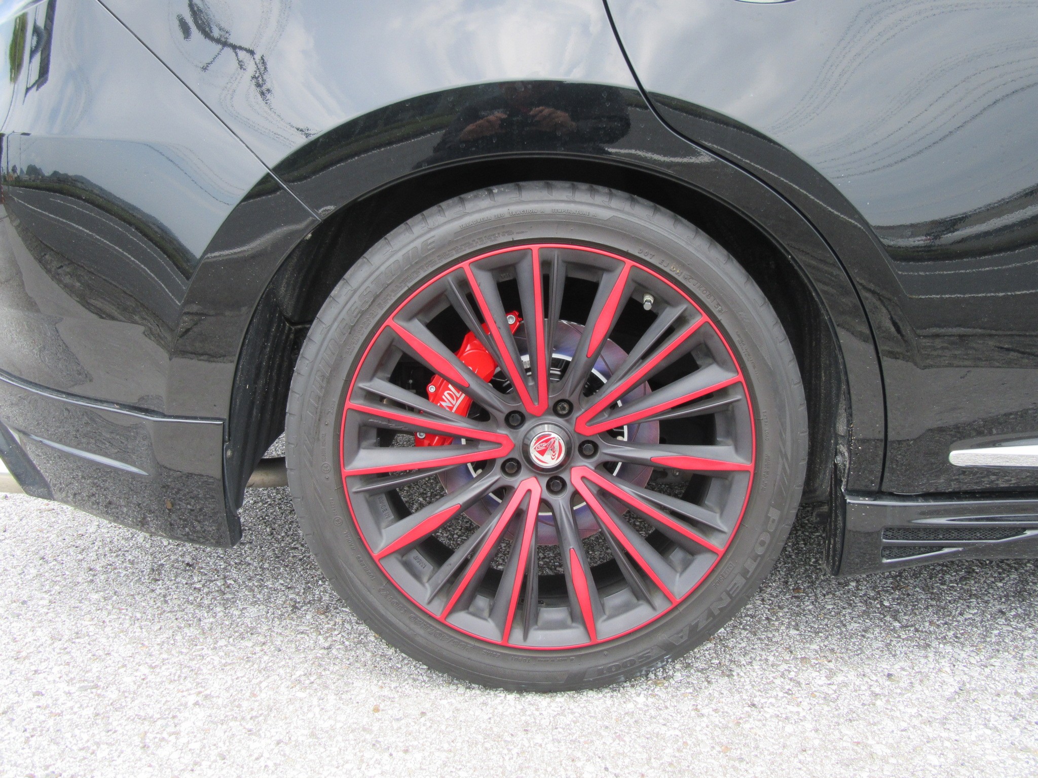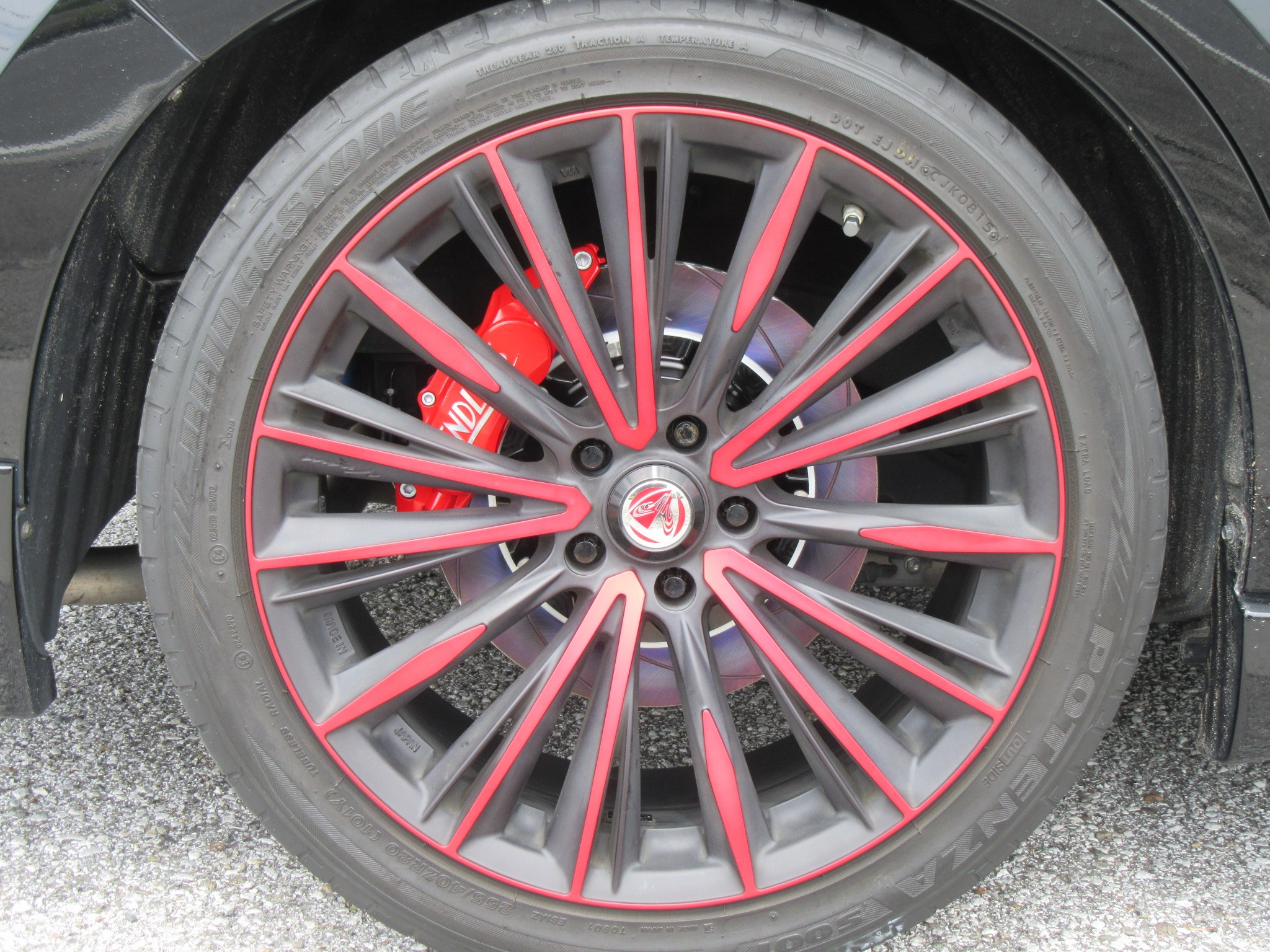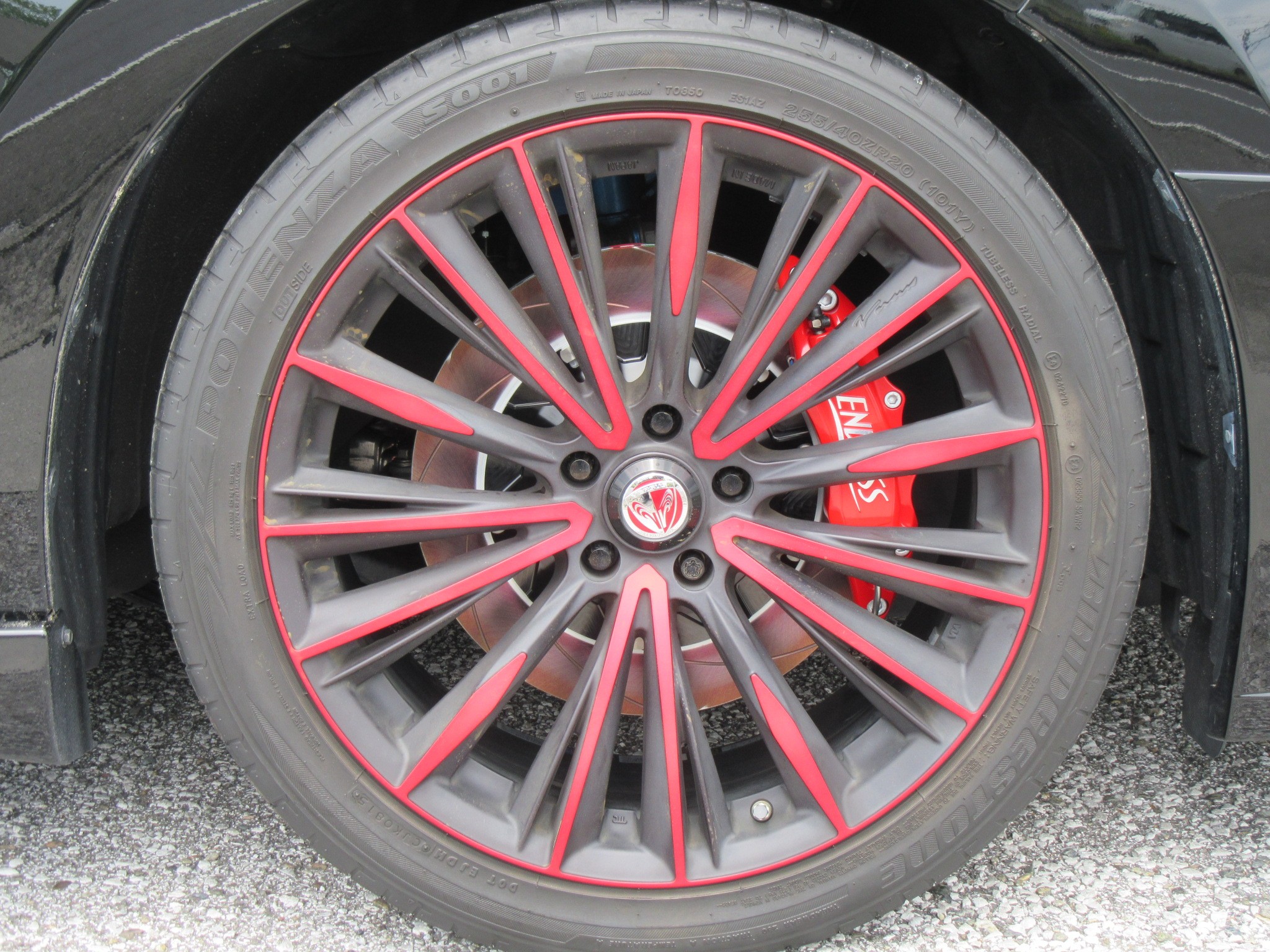こちらのお車、国内最後の4本だった、黒いボディにレッドがとっても映えるホイール
