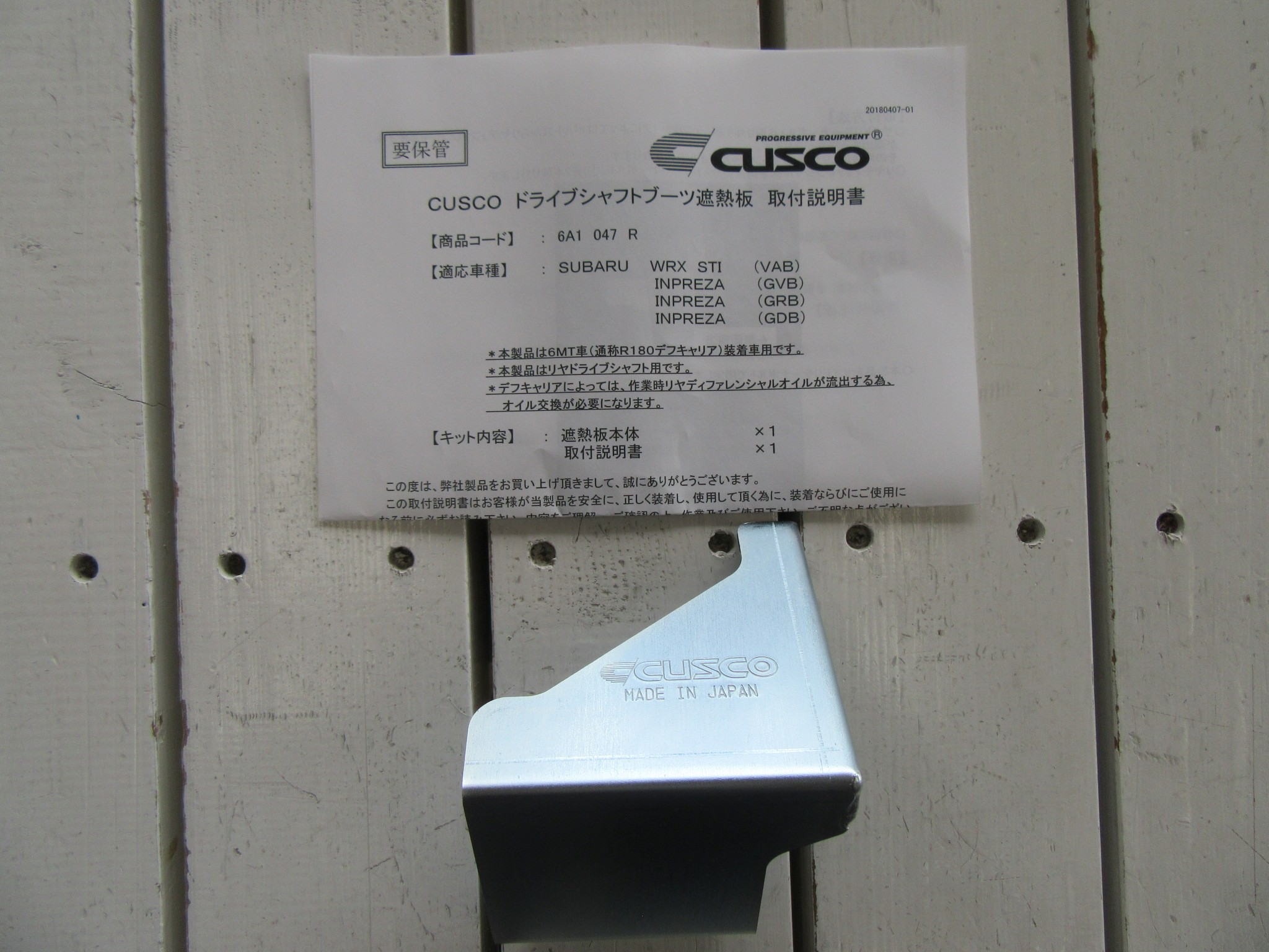 「クスコ ドライブシャフトブーツ遮熱板(税込み定価 6480円)」