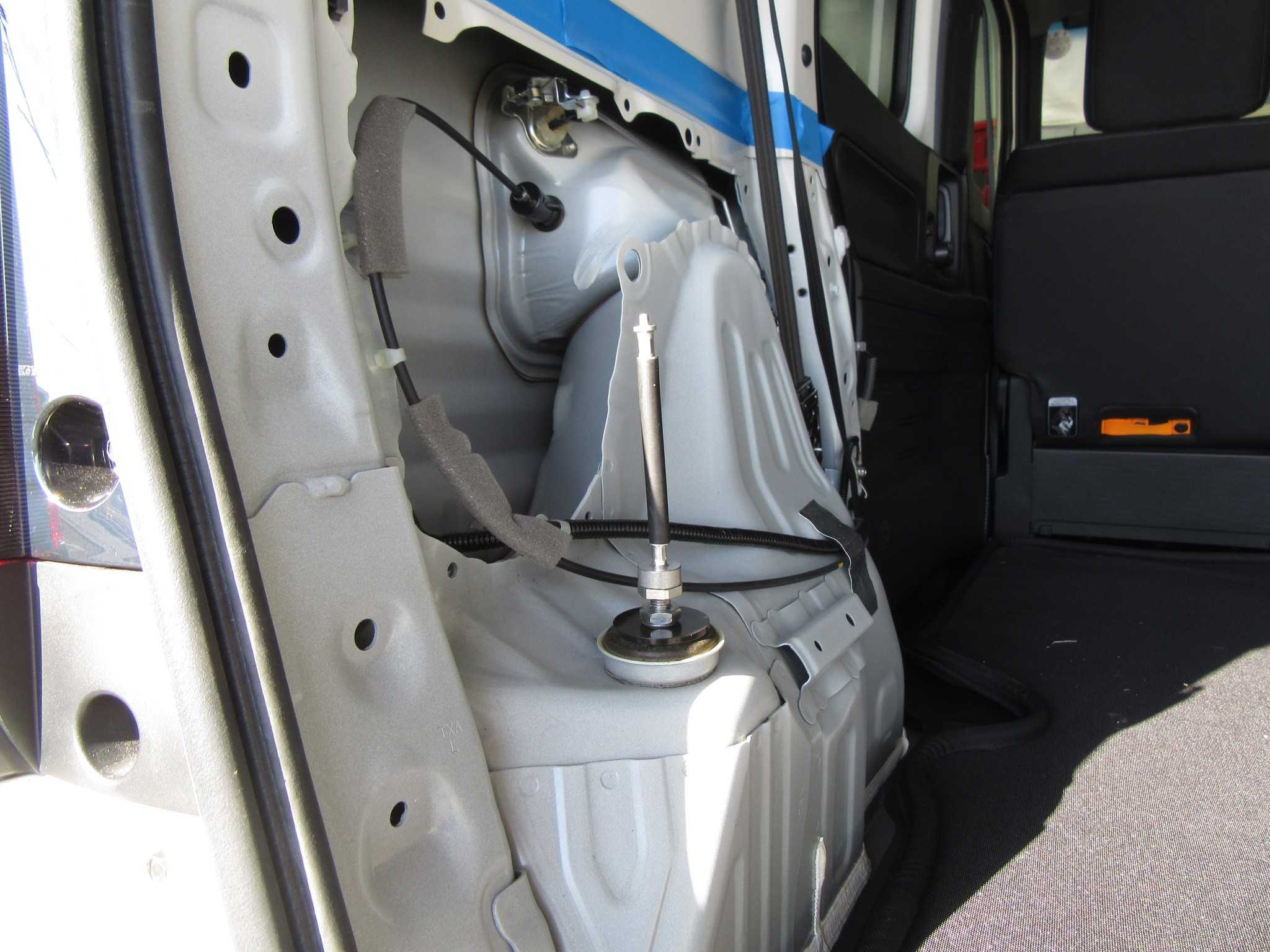 リア内装の加工部分も切り口が目立たないように、今回はゴムのグロメットを使ってみました。