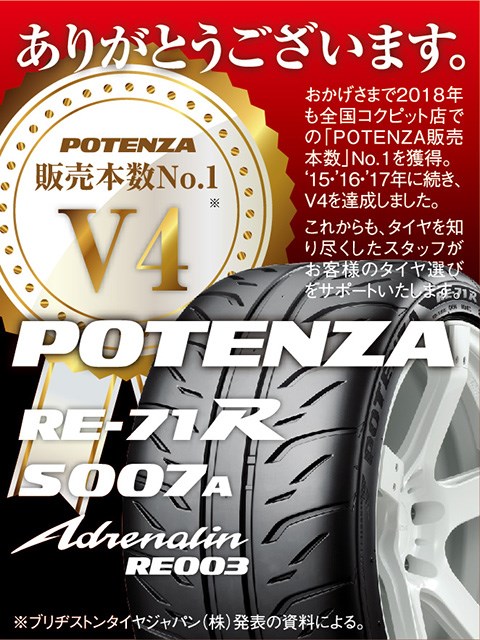 4年連続となる「POTENZA(ポテンザ)販売本数NO.1」を獲得!
