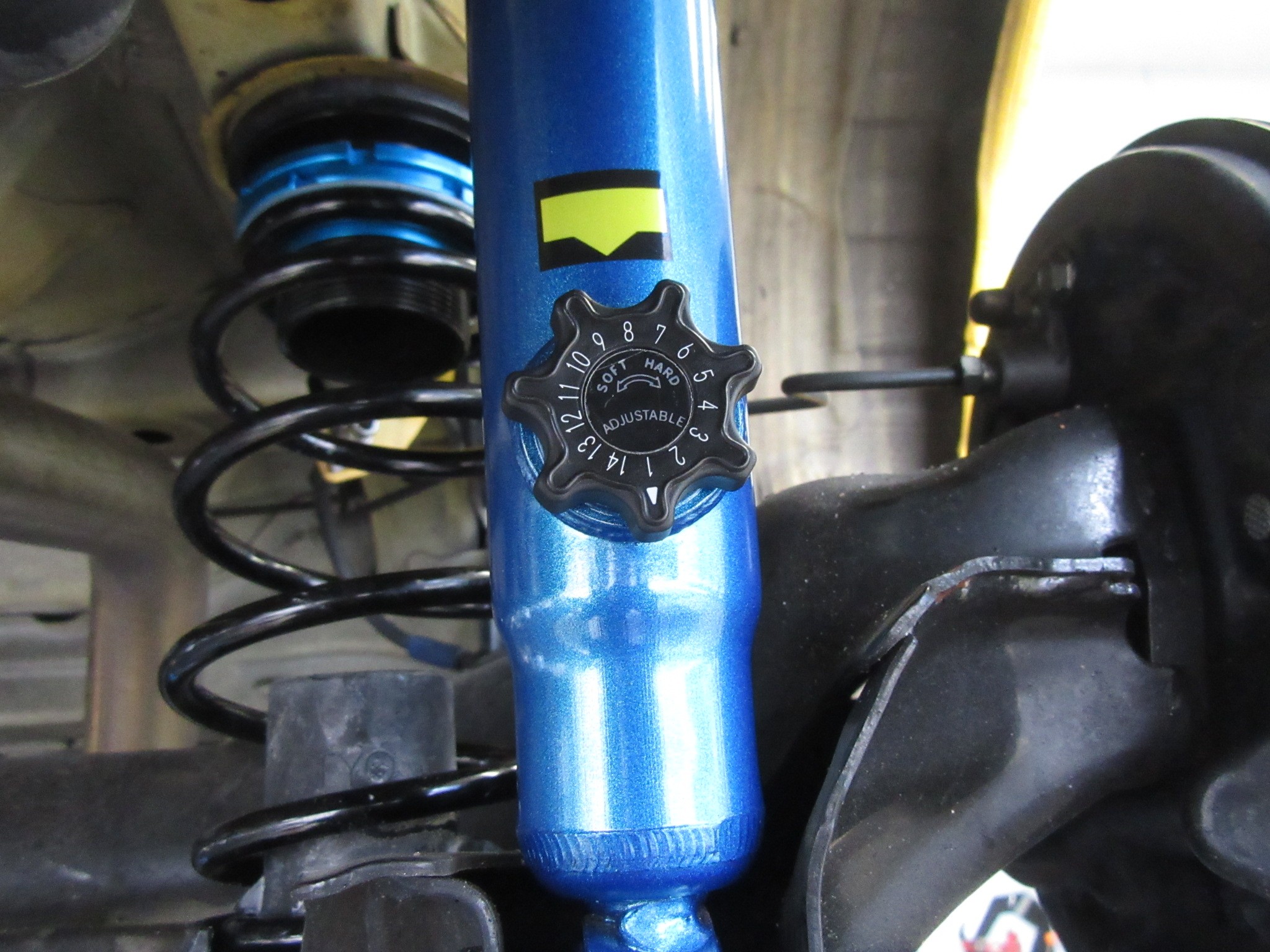 リアには、“誰でも変化の分かる”14段の減衰力(硬さ)調整が標準装備。