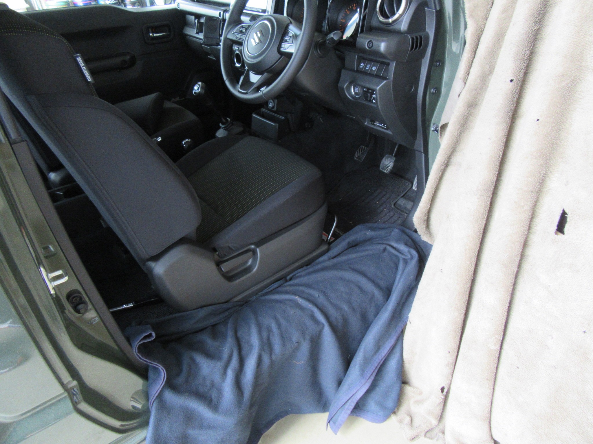 もう一度しっかり養生して、車内にレカロシートを挿入後、