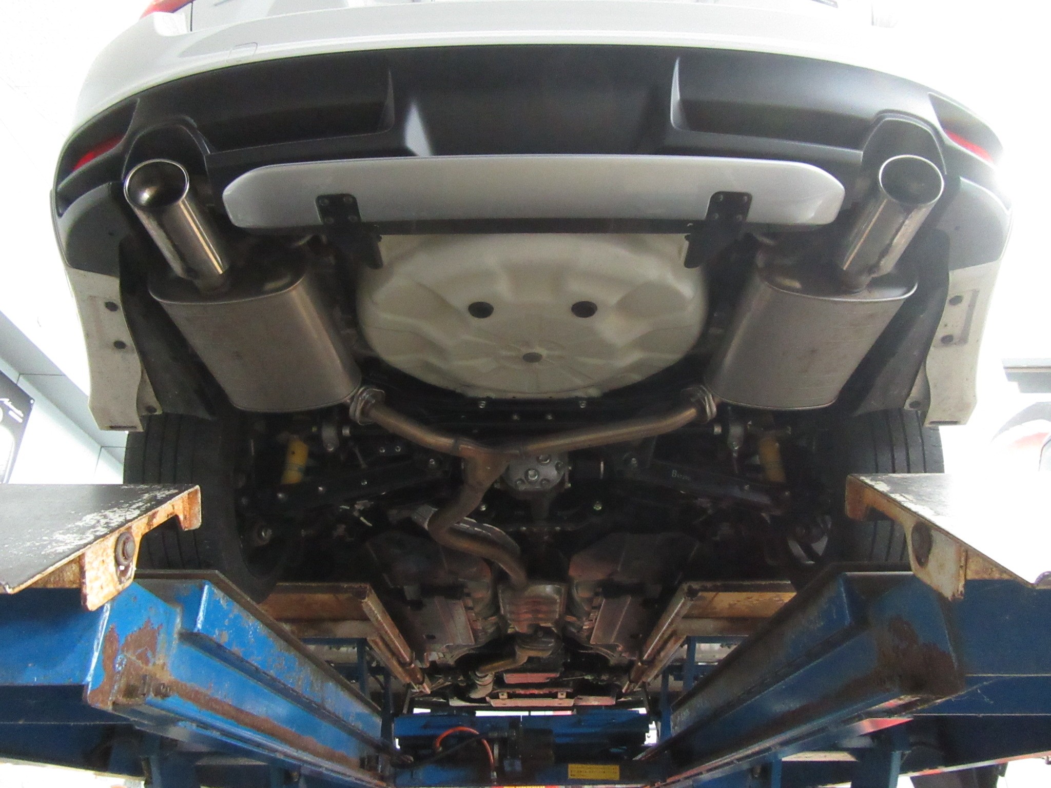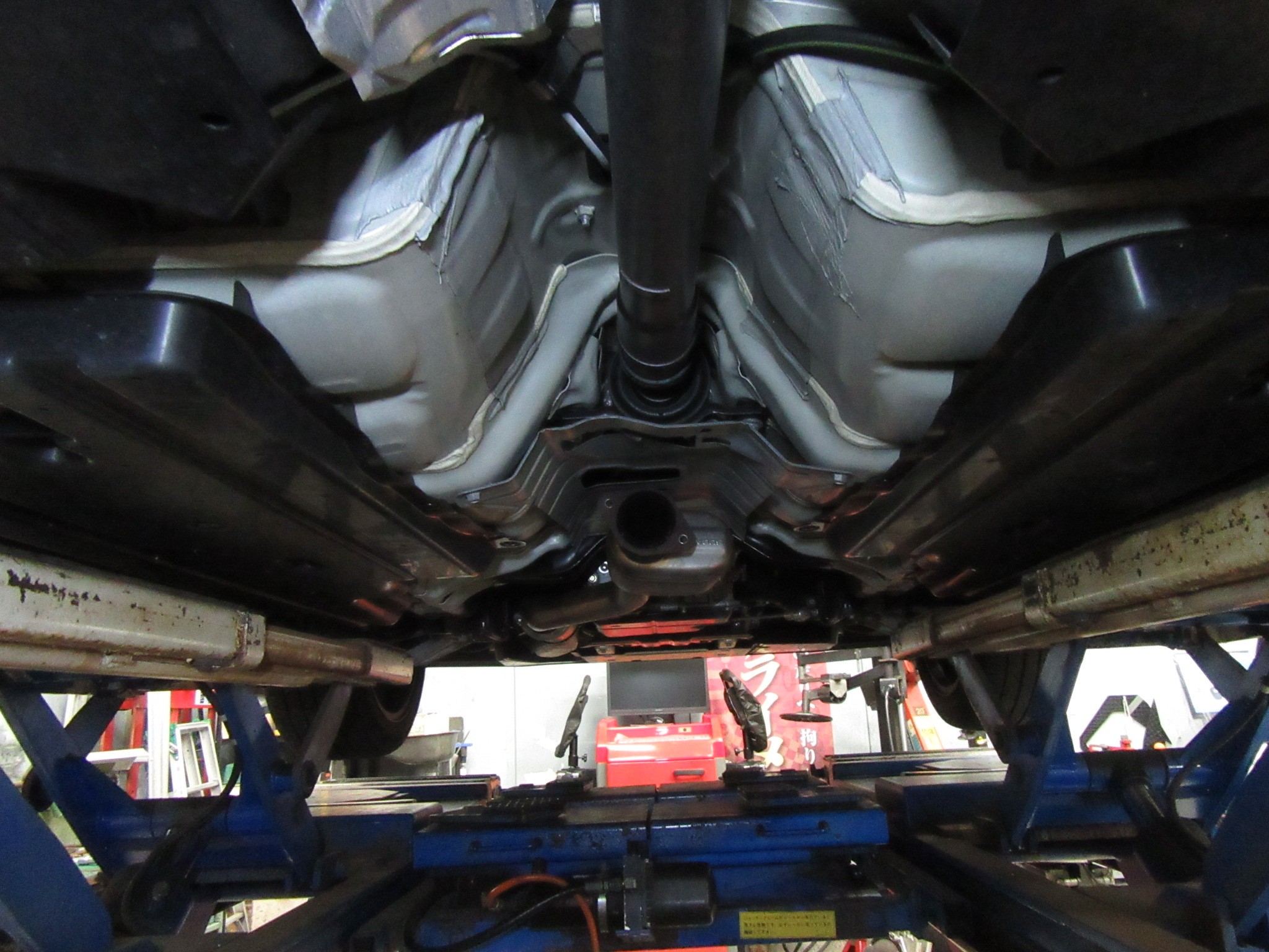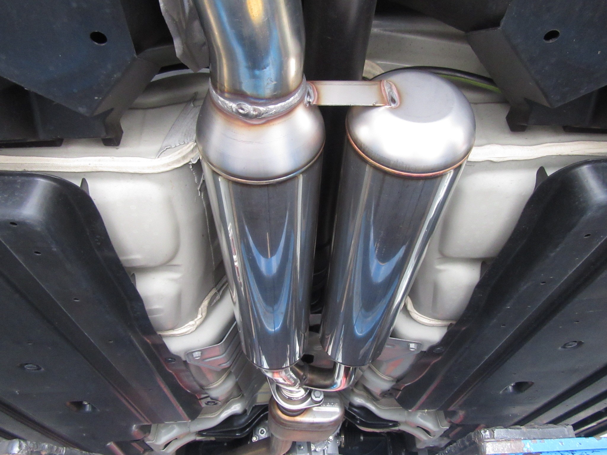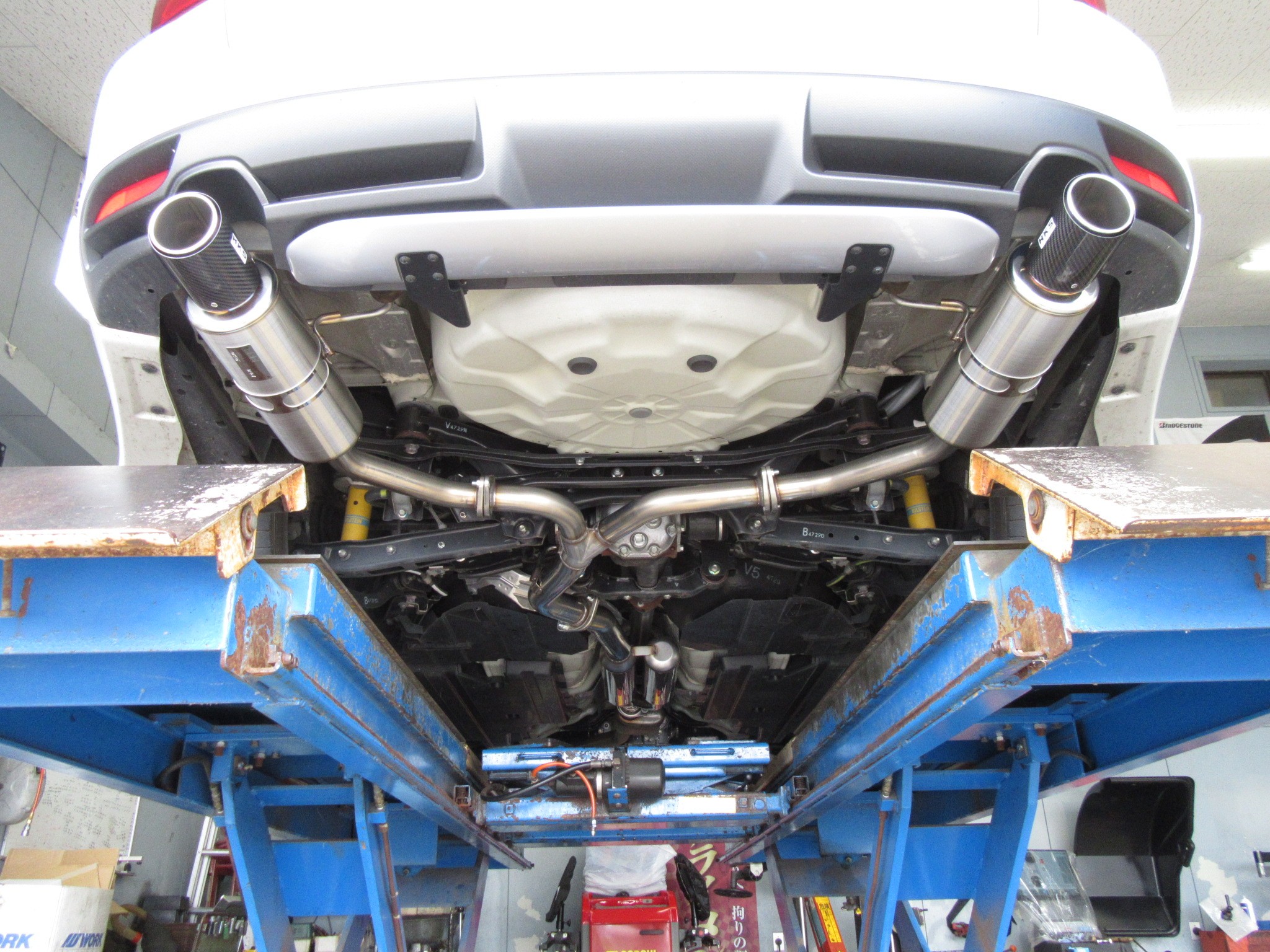 まずはこんな左右出しの純正マフラーを、