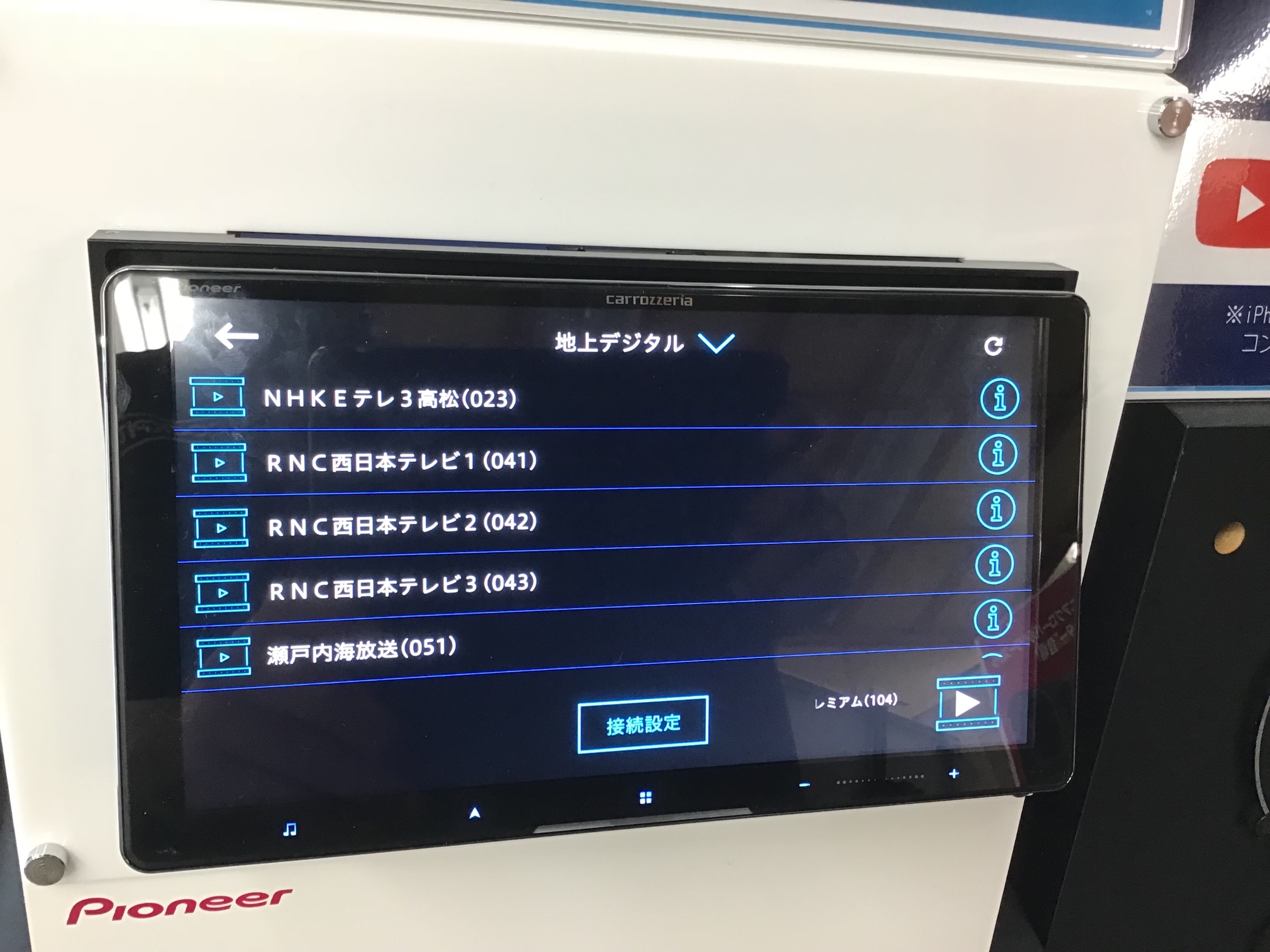 香川県にあるパイオニアの営業所の、レコーダーが受信しているTV局の選択画面。