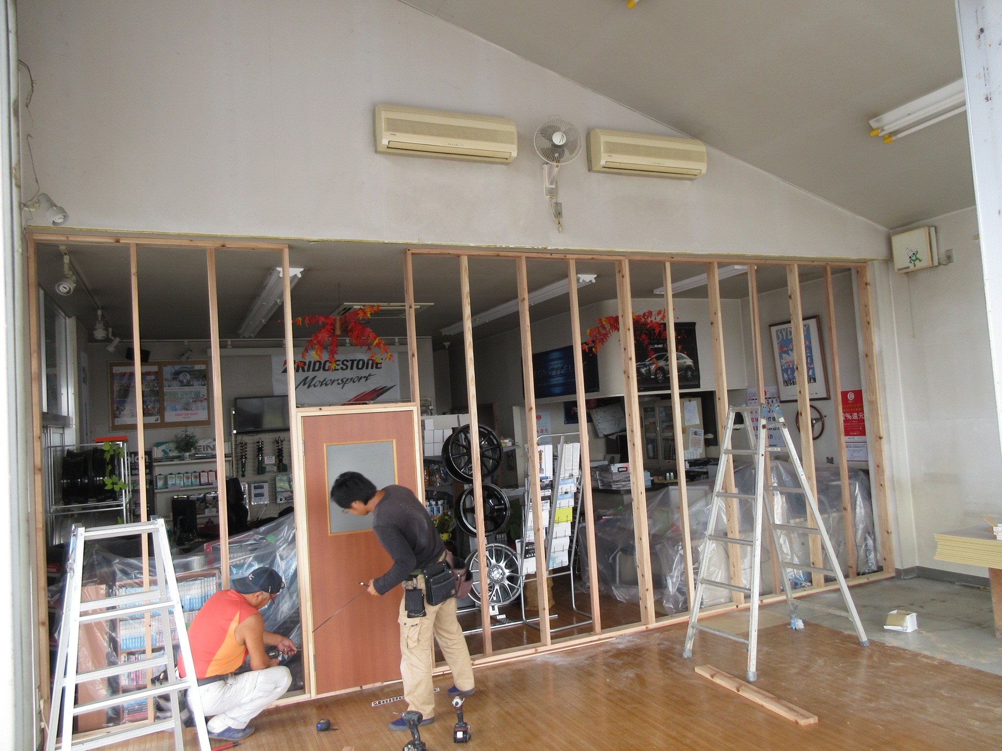 店内の真ん中に柱が立ったと思ったら、