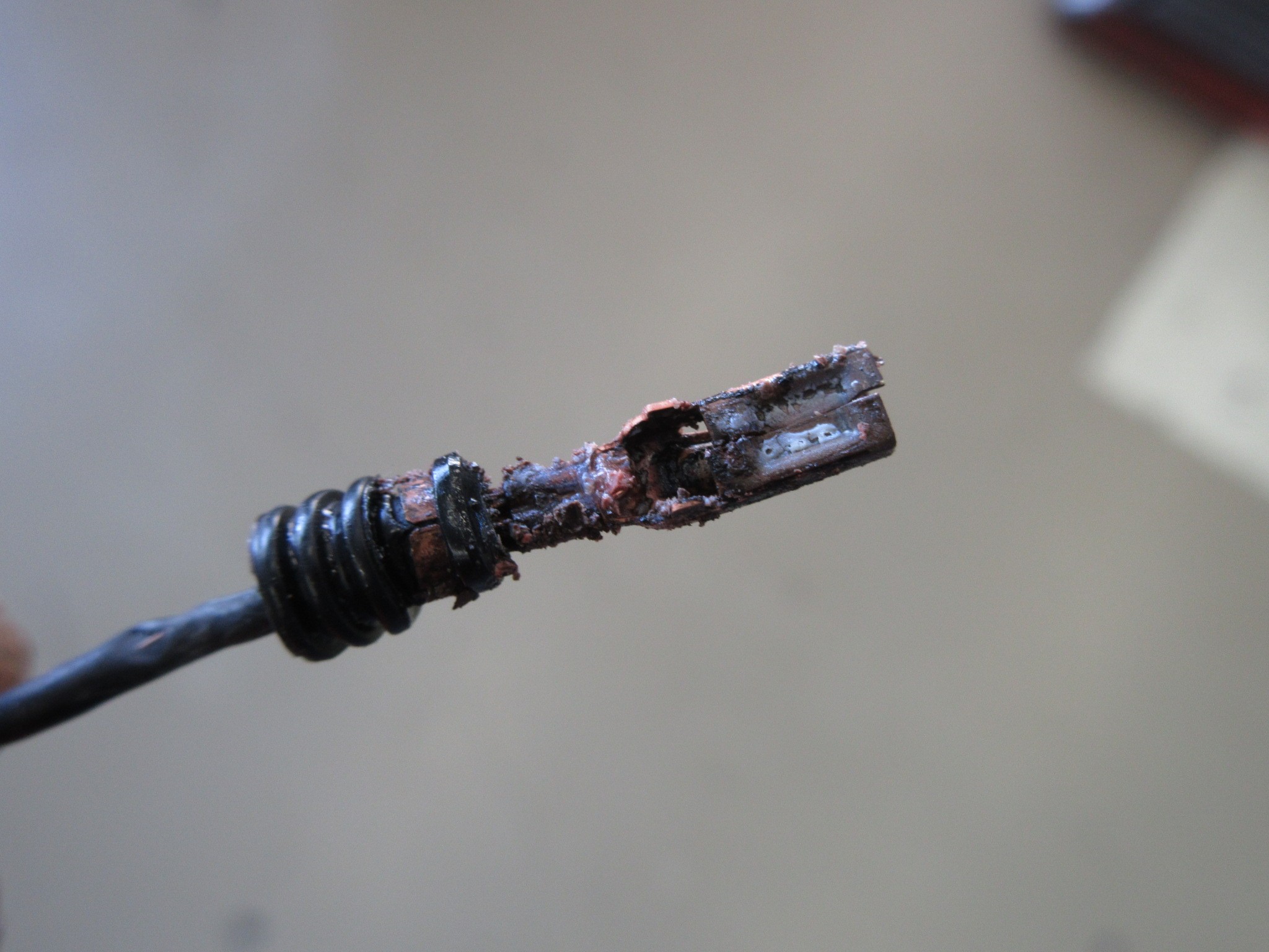 ぽろっと崩れ落ち、こんな感じで端子も焦げた状態・・・(;一_一)