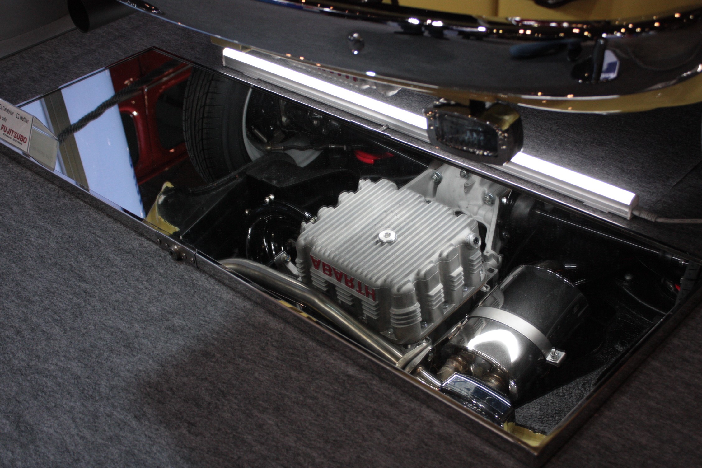 (「ABARTH」のロゴ入りオイルパンがステキ♡)