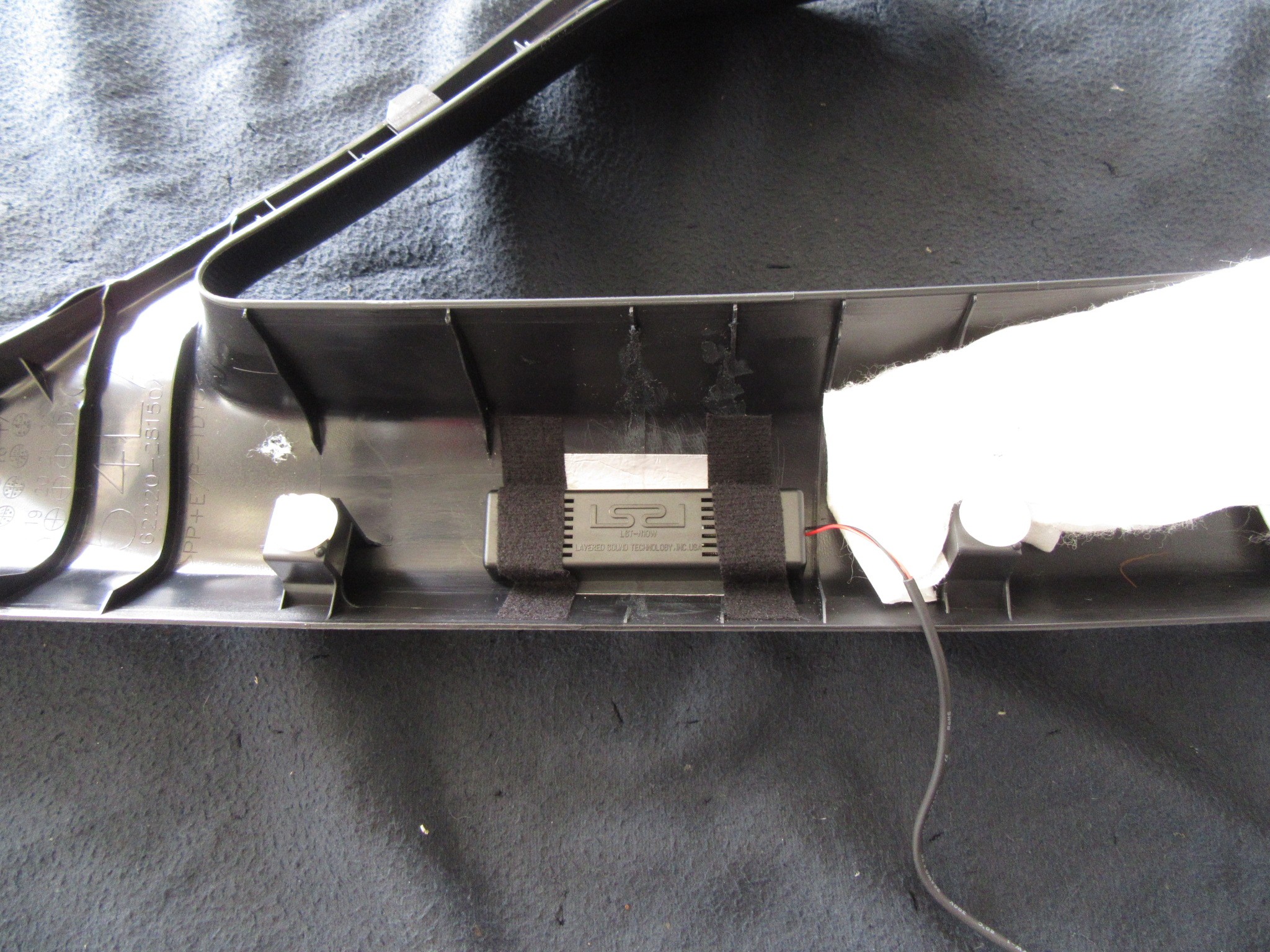 通称“Aピラー”と呼ばれる場所のカバー内に、左右で一個ずつ取り付けしますが