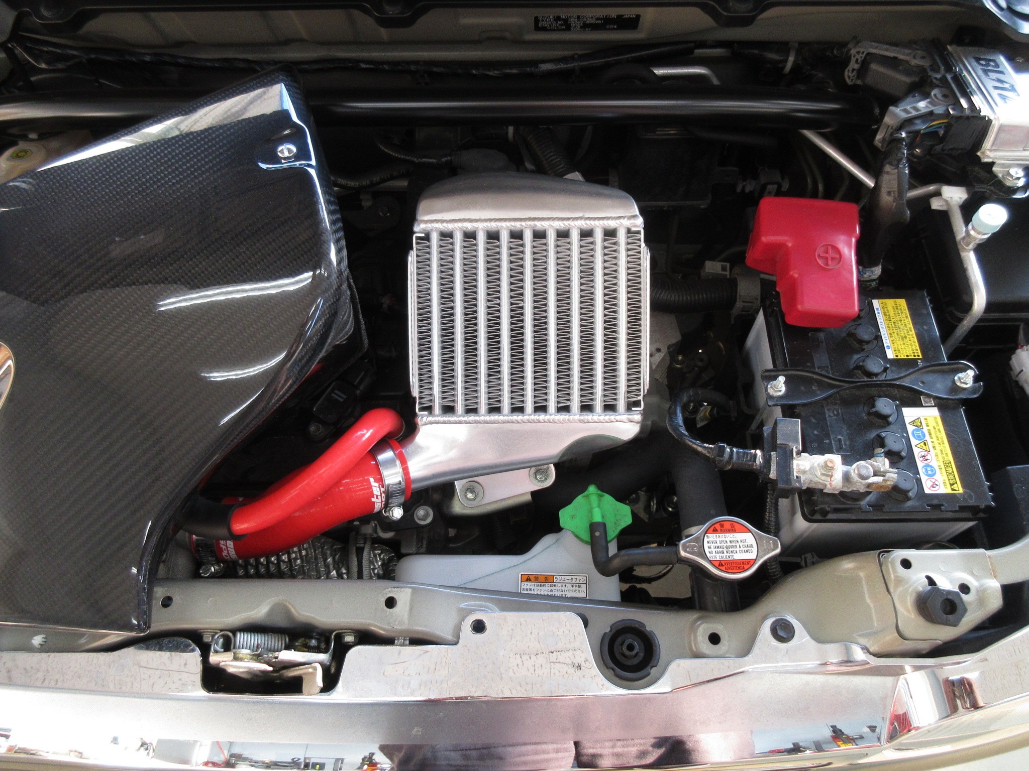 まずは、こんなエンジンルームを開け、純正のインタークーラーを取り外していきますが、