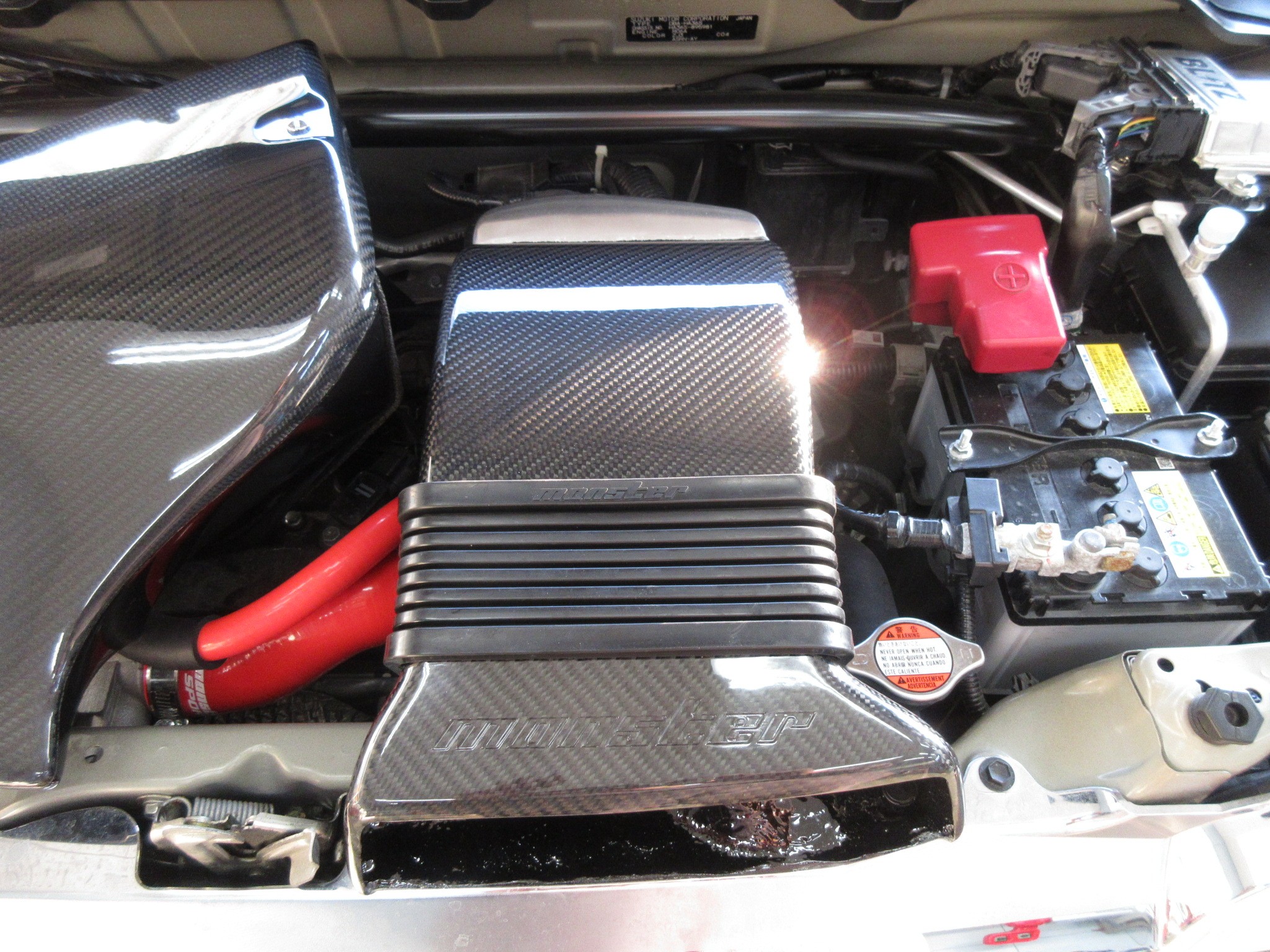 インタークーラー側のNO2ダクト(上ーモンスタースポーツ 下ー純正)