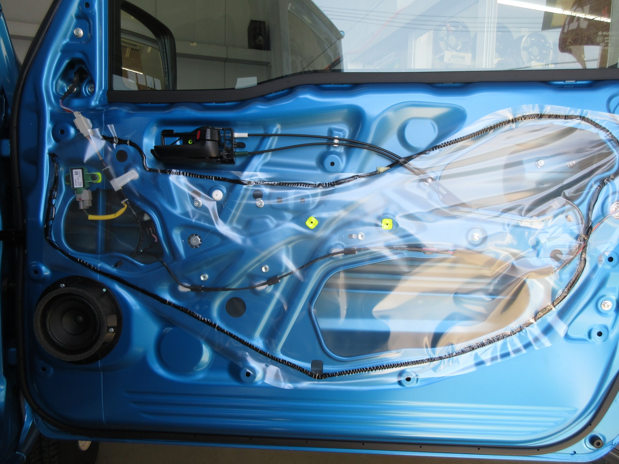 まず最初に、ドアの内装を取り外すと、