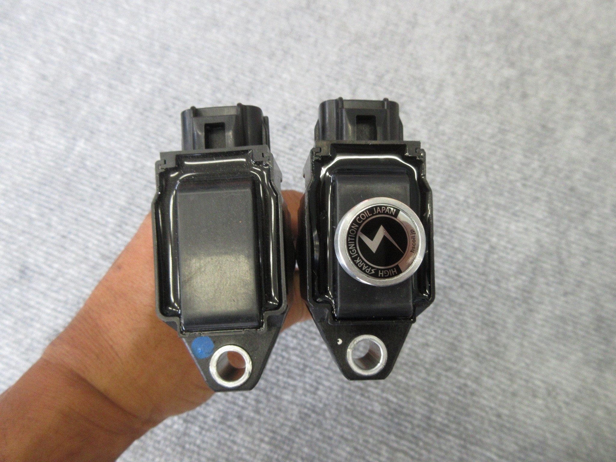 (左ー純正点火コイル 右ーハイスパーク イグニッションコイル)
