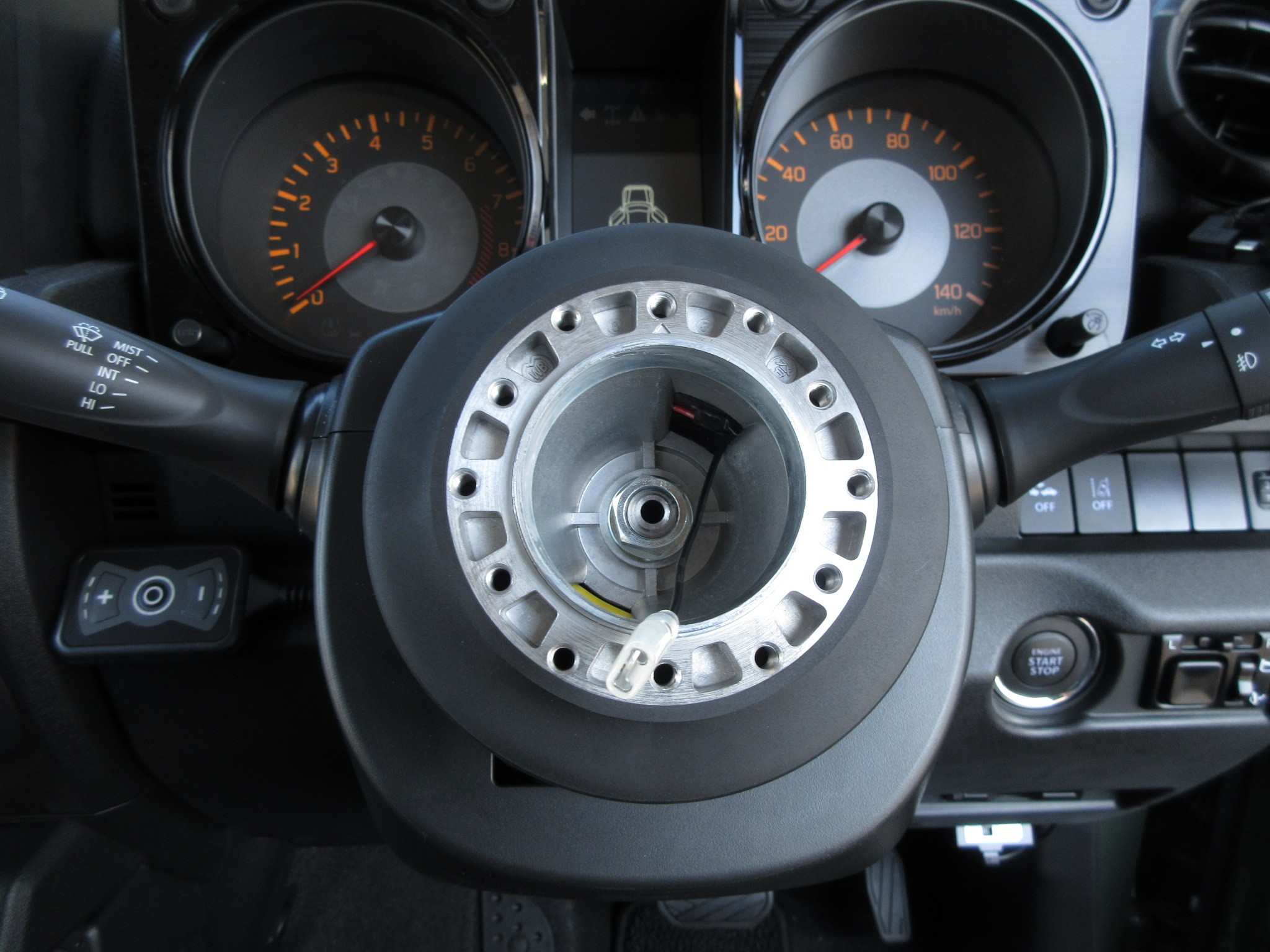 まずは、ハンドルカバーを装着していた純正ステアリングを、