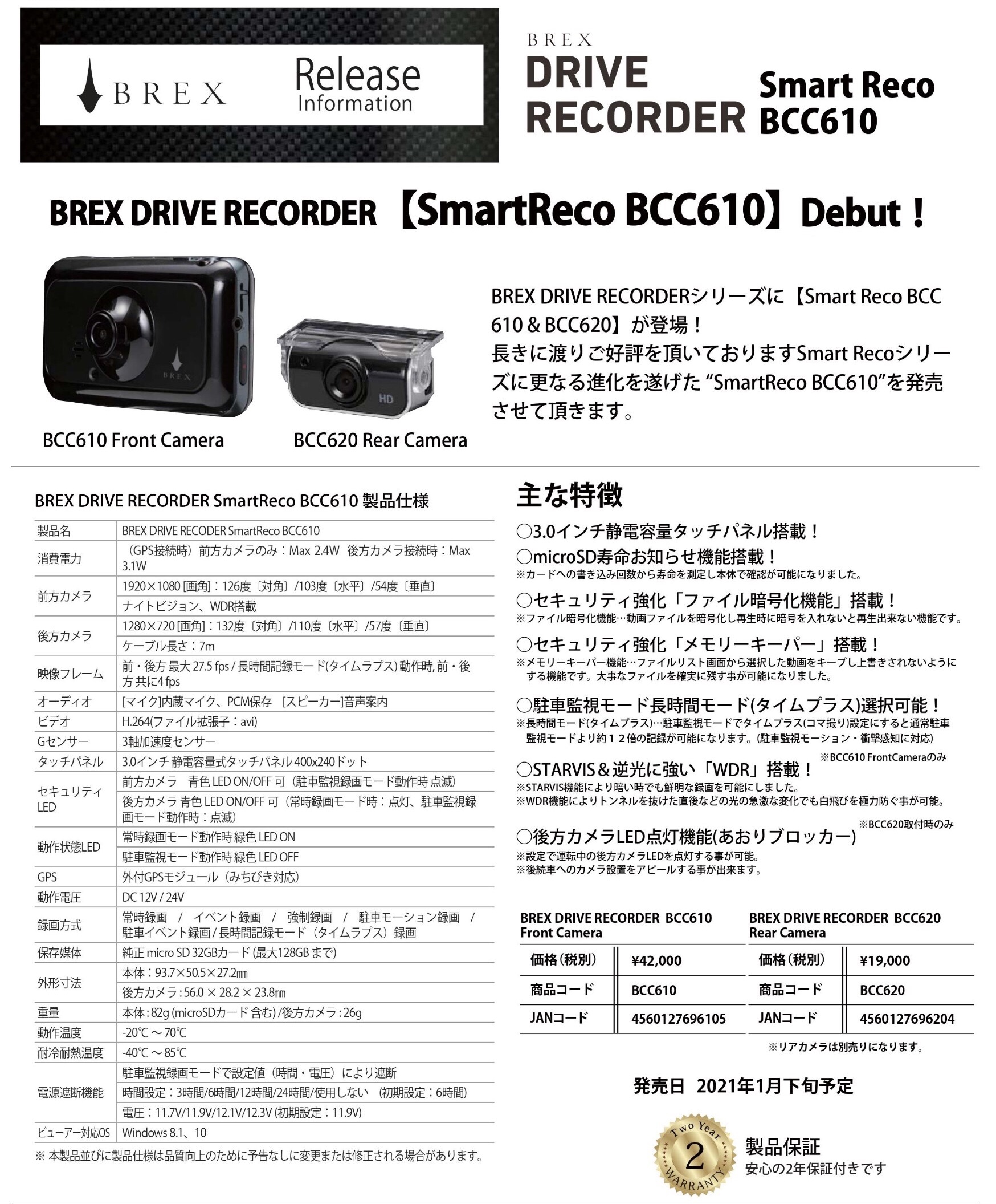そんな「BCC610」&「BCC620」の発売開始は、2021年1月下旬予定とのこと。