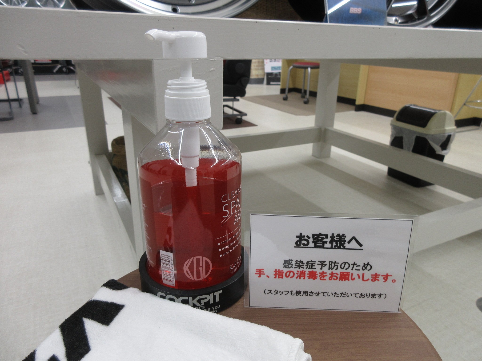 その他にも、店内入口にアルコール消毒液を設置したり、