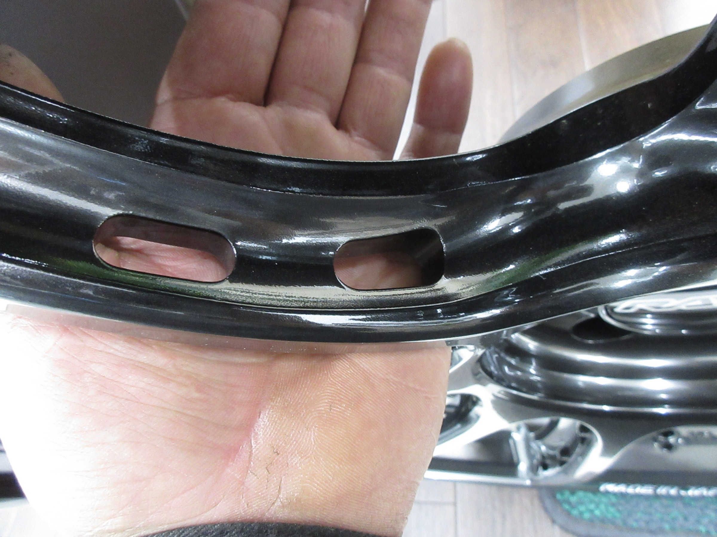 今までに見た事の無い、かなり特殊な形状をしたリム部分を、