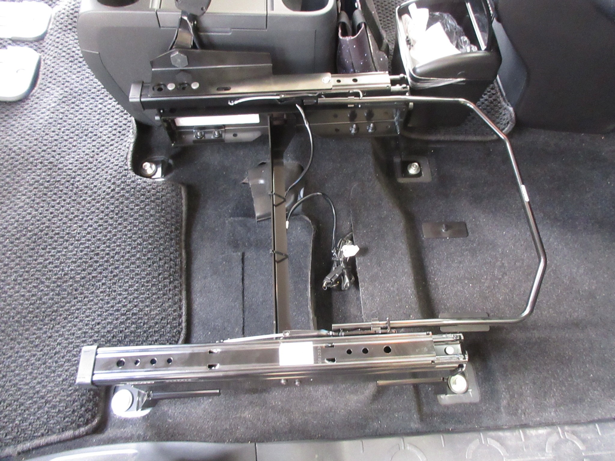 ベースフレームとシートレールを車内で組み付けると、