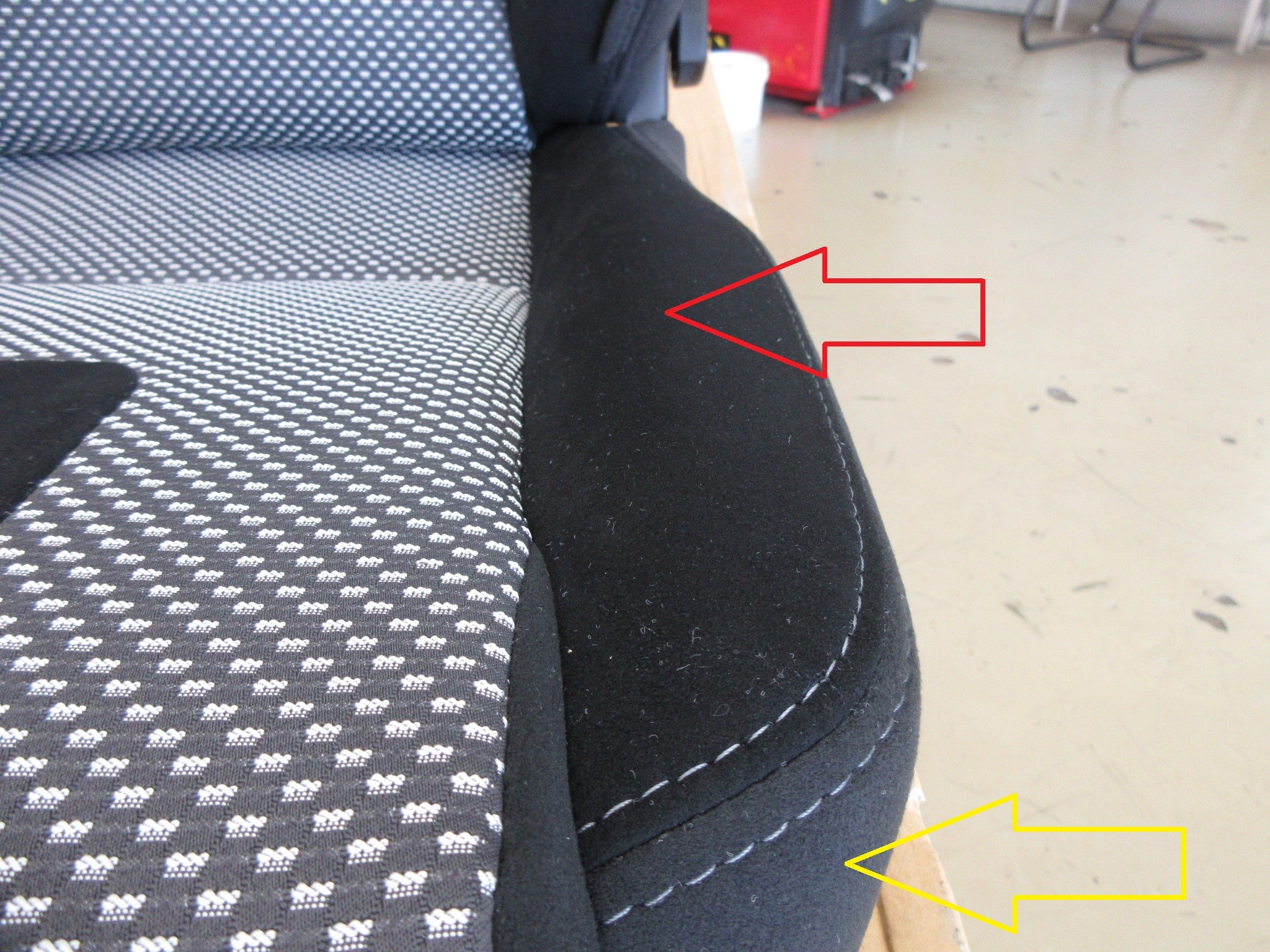 そしてあまり体が触れない黄色い矢印部分のサイド面と背面部分には