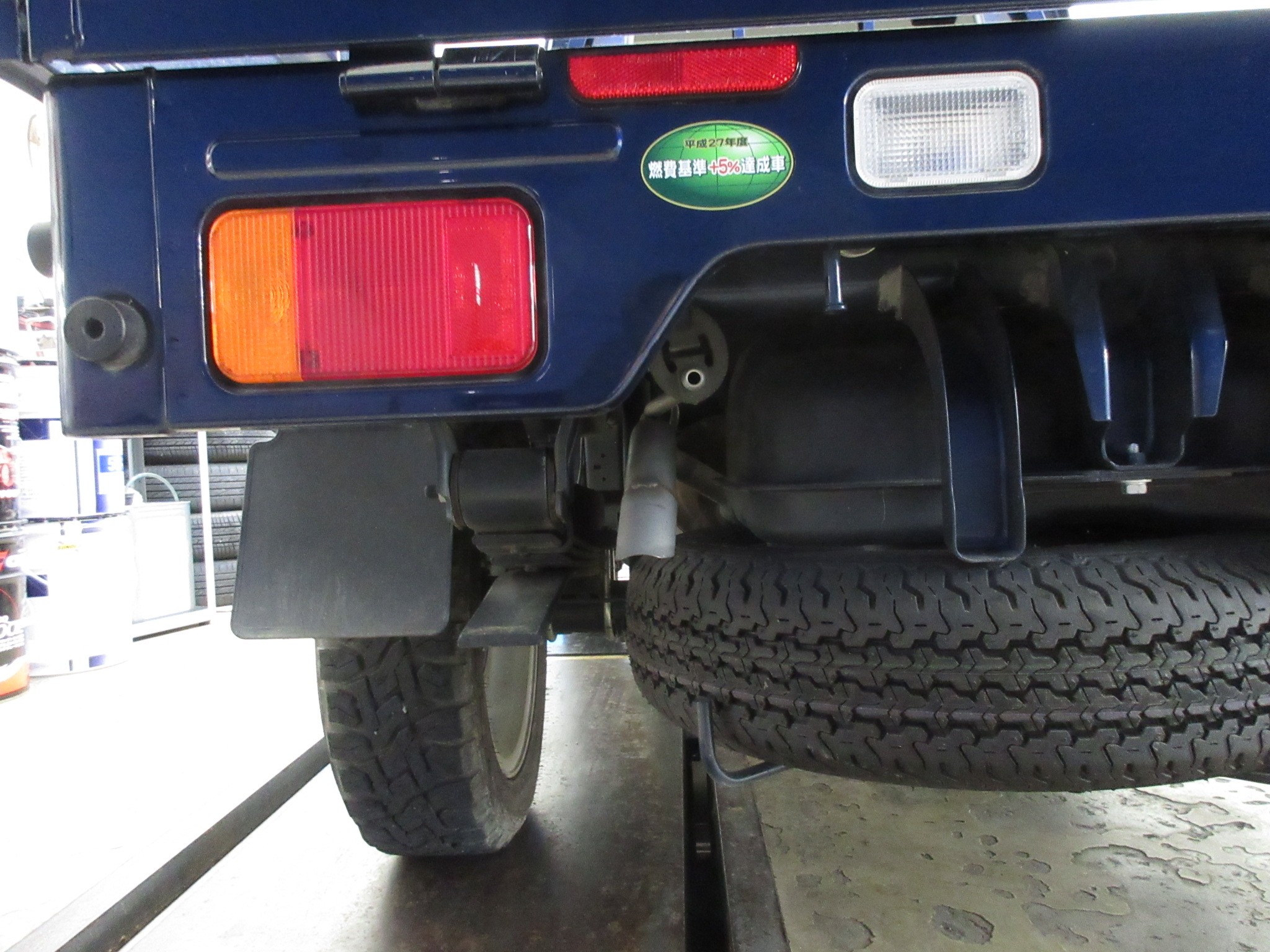 スペアタイヤやボディに干渉しない位置に細かく調整すると