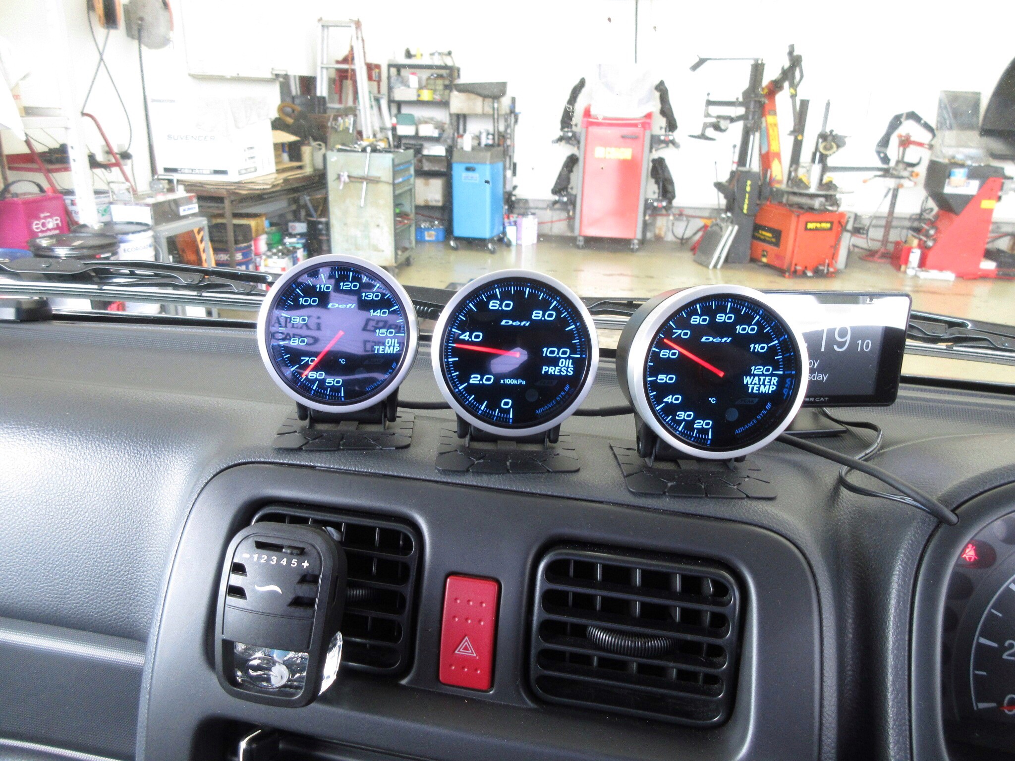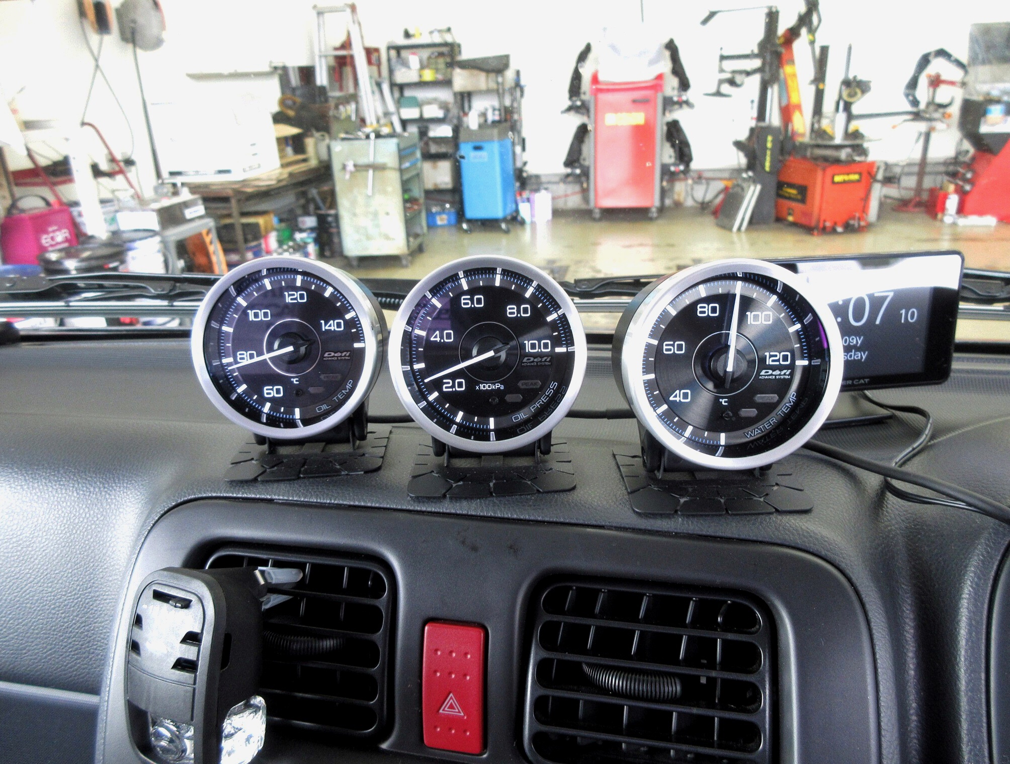 すでに取り付けられていたDefi(デフィ)の3連メーターを、