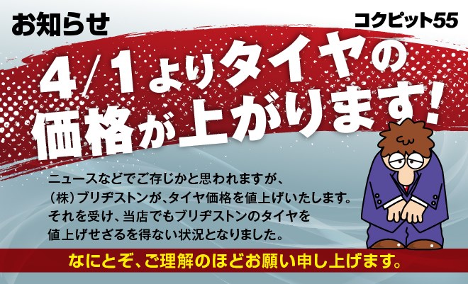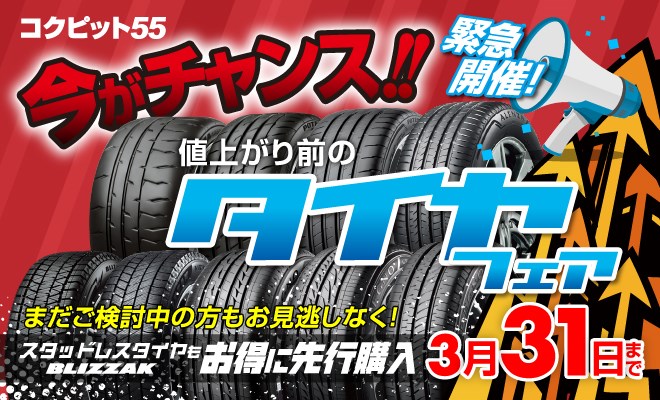 「値上げ前の緊急タイヤフェア」を開催中!