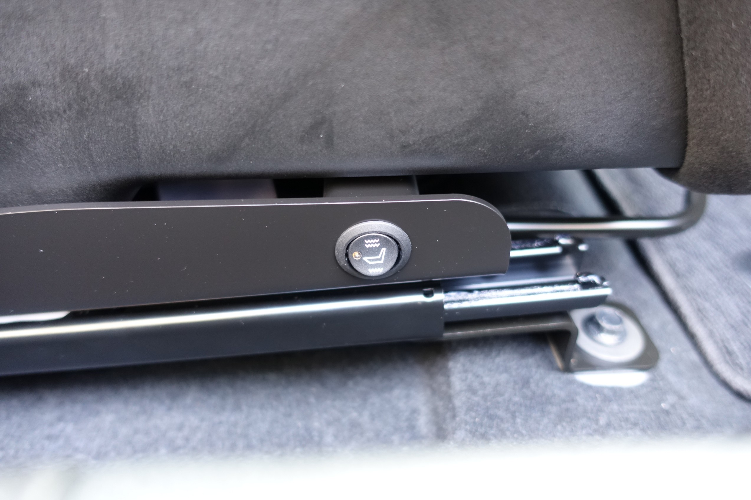 純正シートのように前へスライドはしないものの、