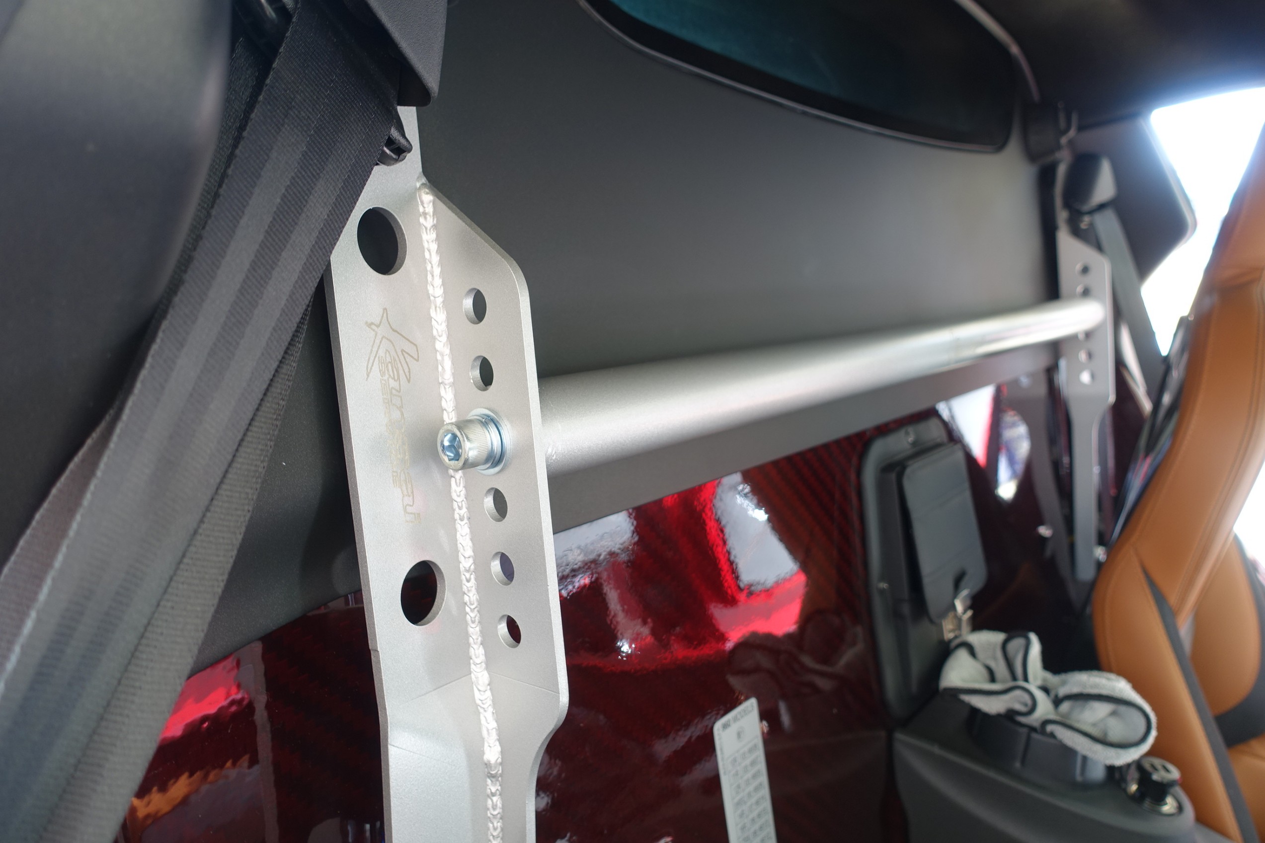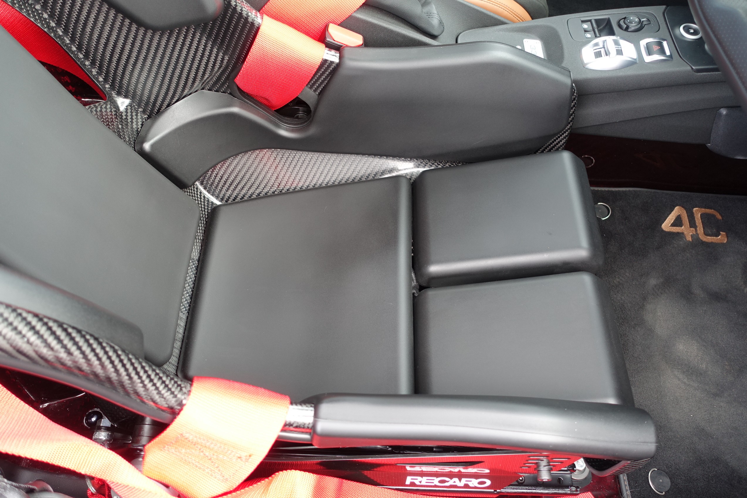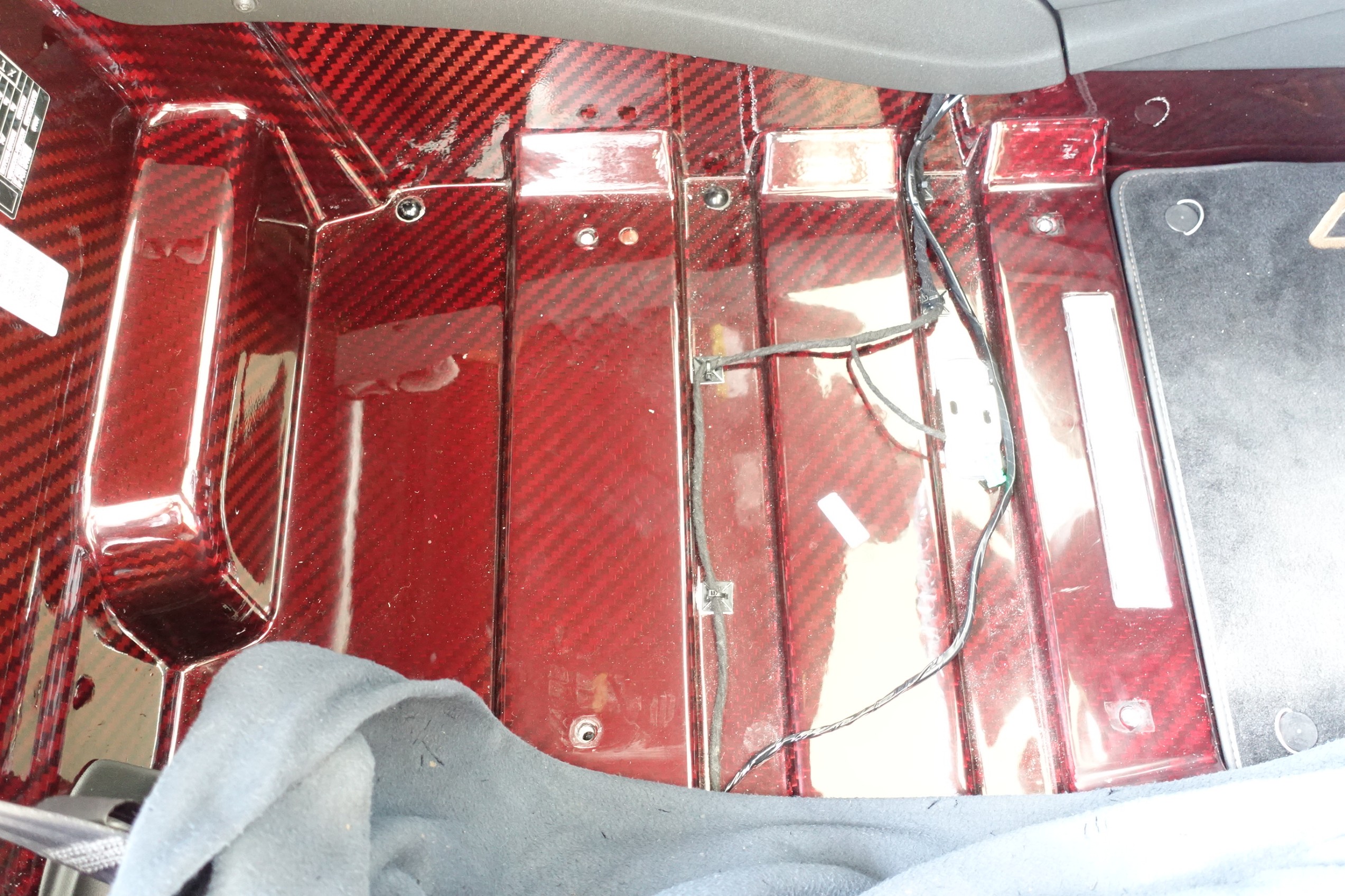 まずはレッドカーボンの車内をしっかり養生してから