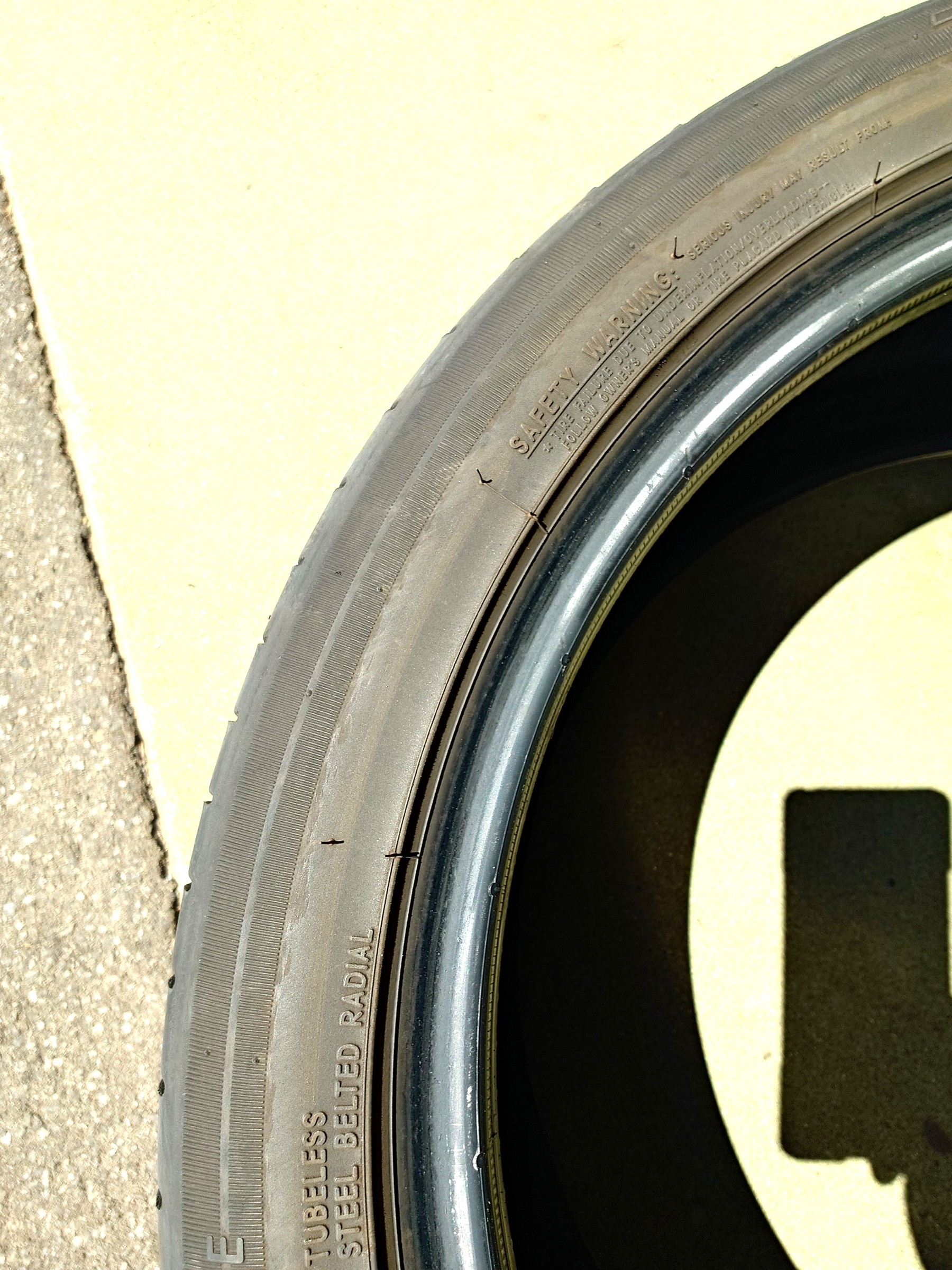 タイヤサイドにつぶれたまま走行された跡が残ってましたので、ホイールからタイヤを外して