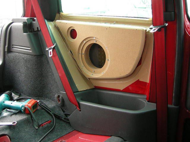 作業工程は写真の通りですが、一番は狭いルポの室内空間を損なわず、いい音をと考え取付致しました。
