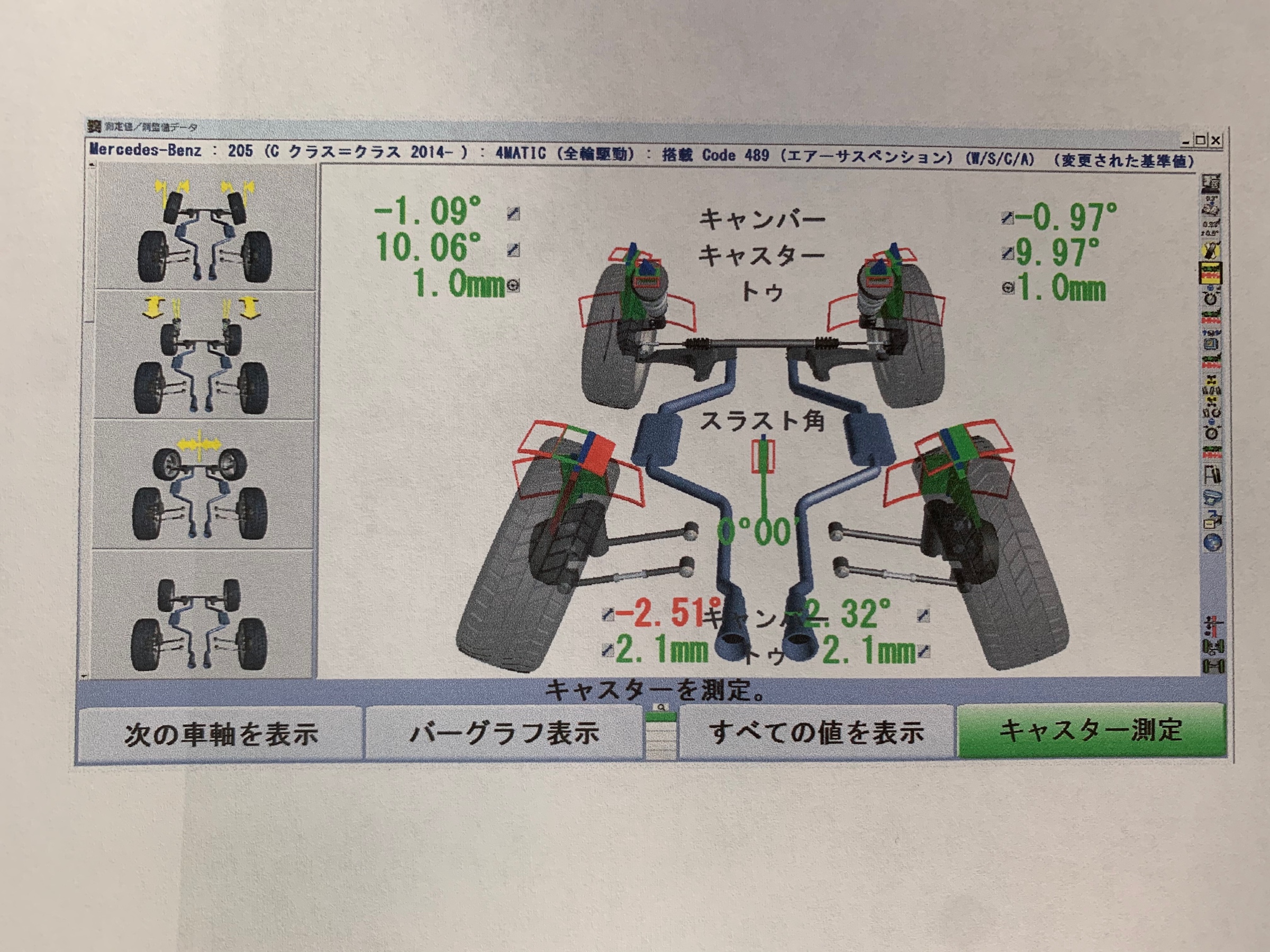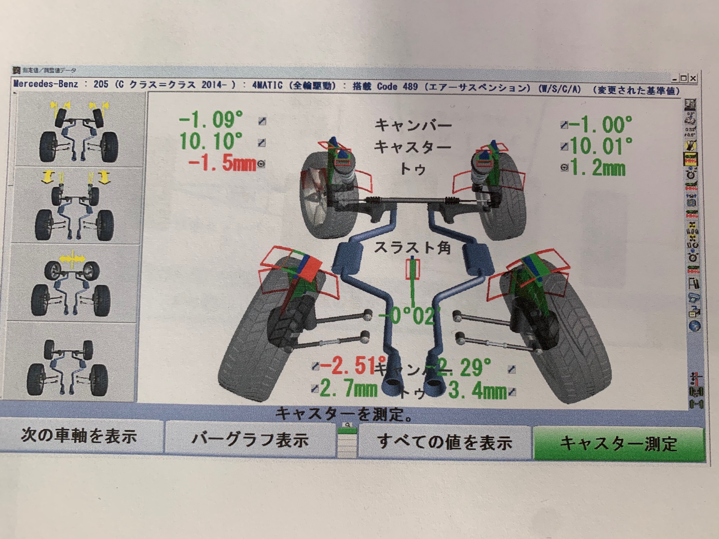 フロントがトゥアウト気味でリアがトゥイン強めなのが、しっかりと調整されました!