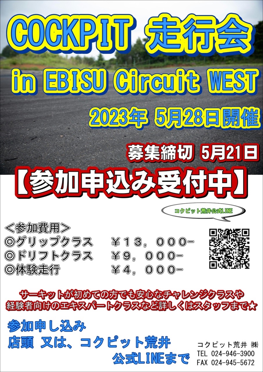 エビスサーキットにて[春のコクピット走行会]!!