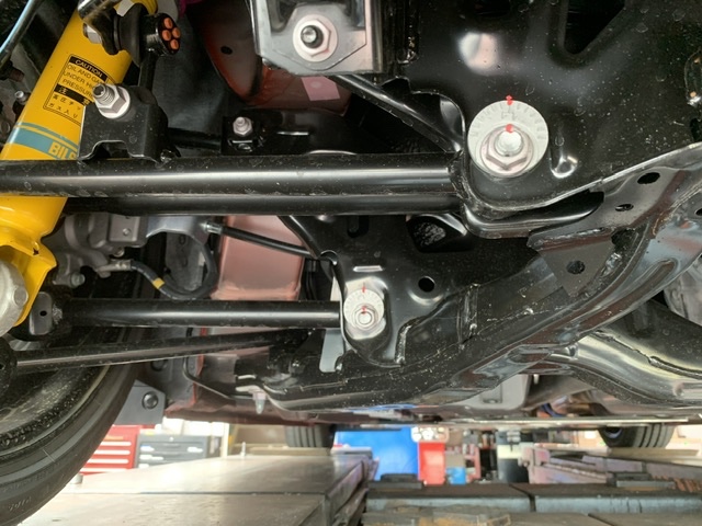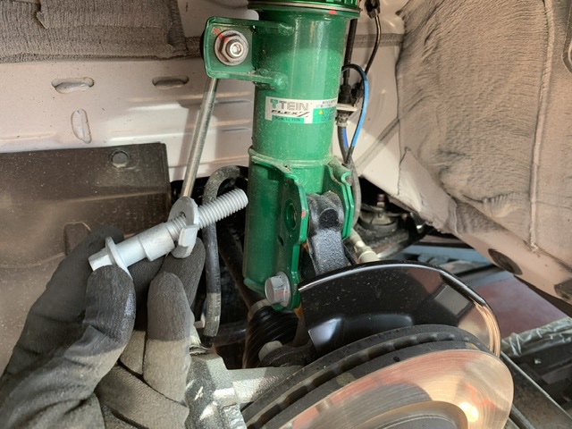 アライメントの前にキャンバーを調整出来るボルトに交換します。