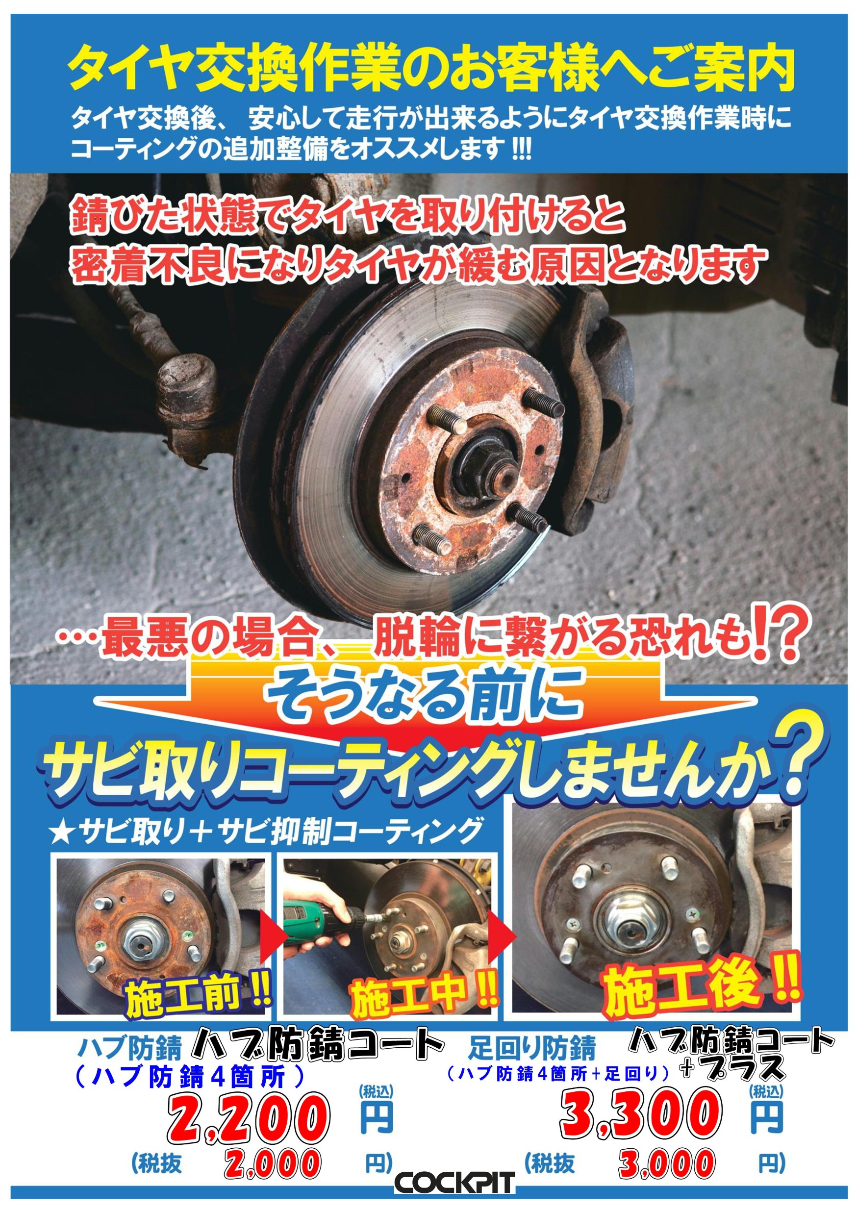 (※ あえてメニュー化はしていませんでしたが、今までもサビのひどいお車はハブ周りのクリーニング&防錆施工を実施していました。。