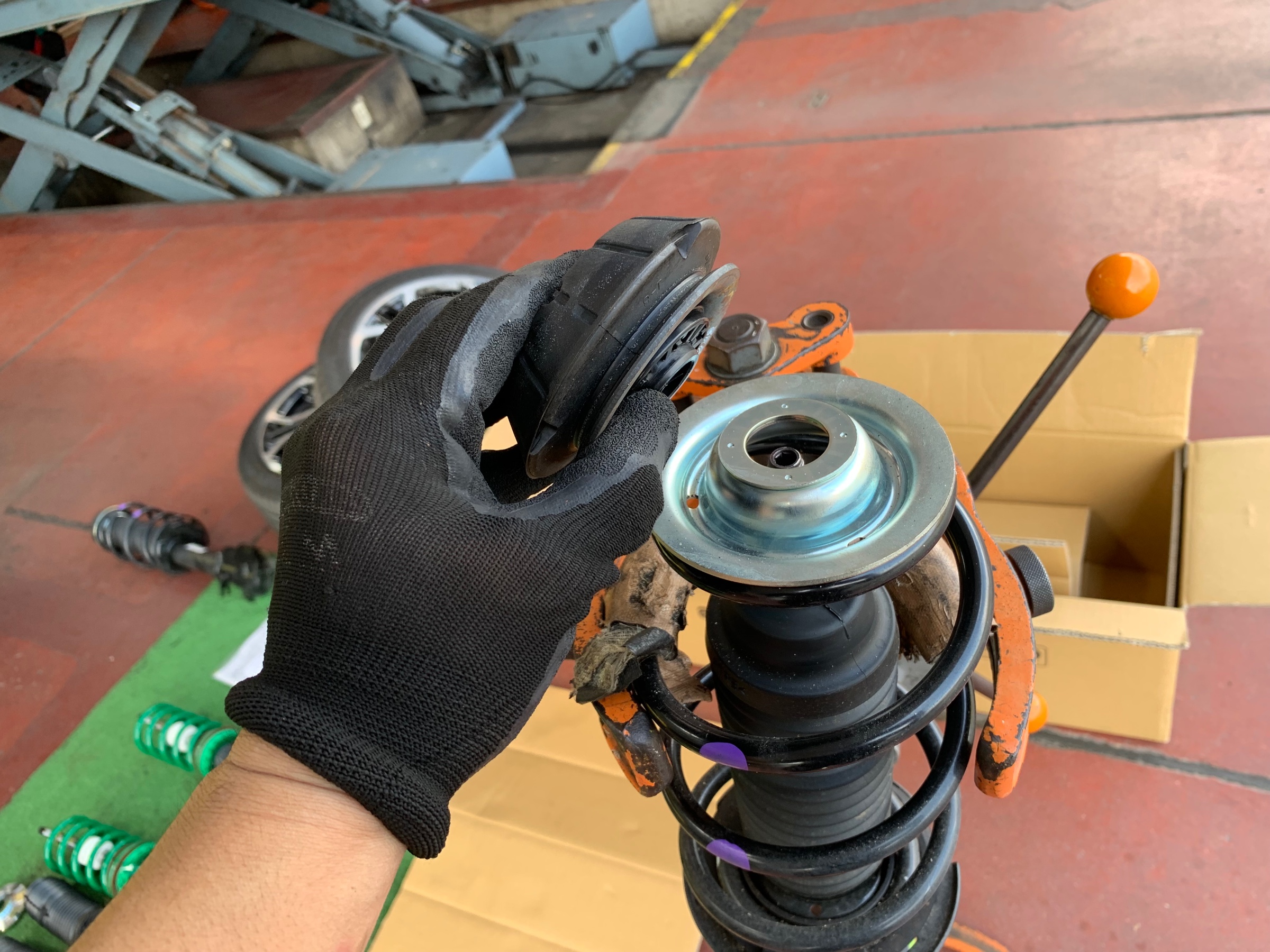 アッパーマウントを使い回しするので外します。