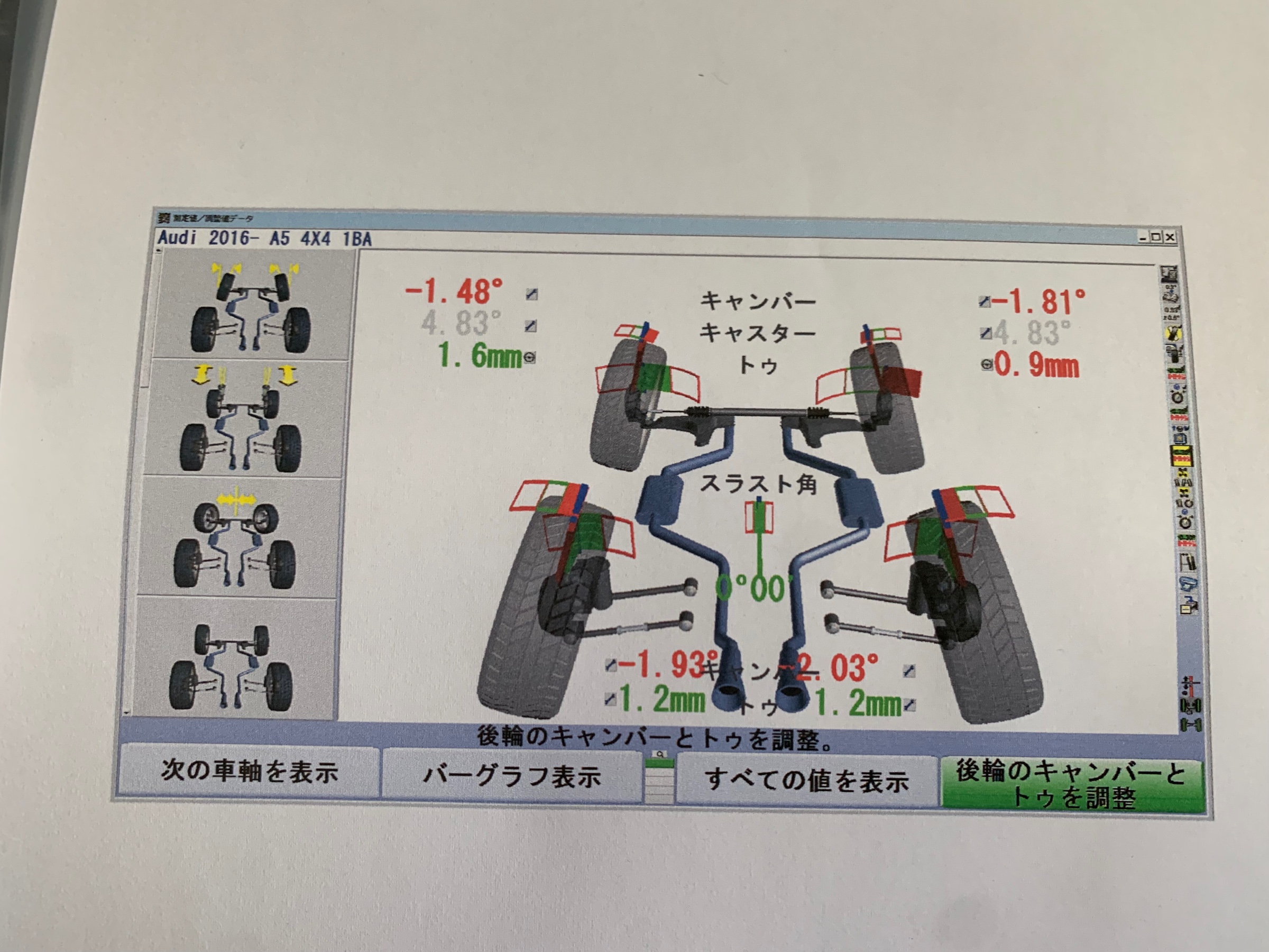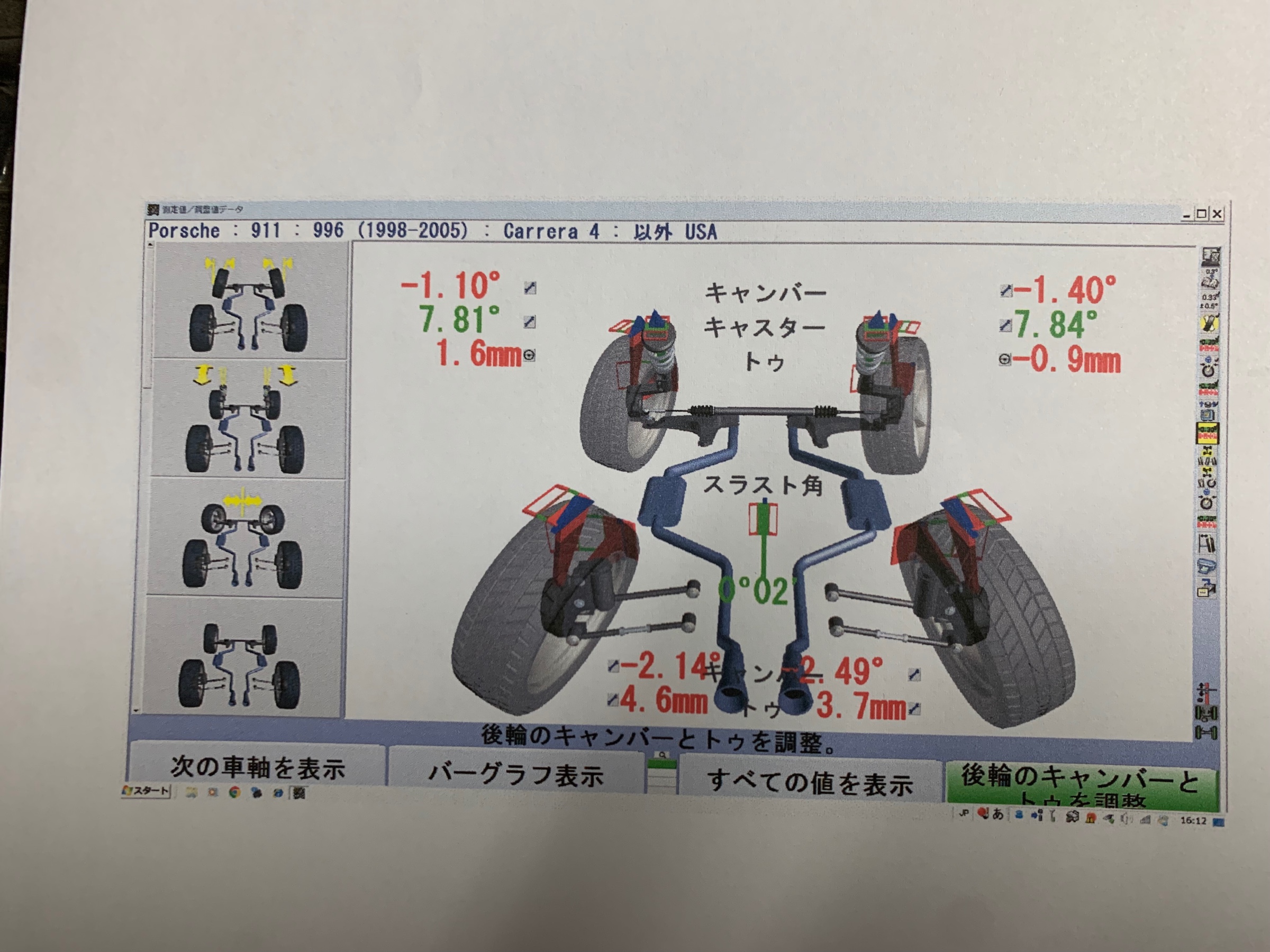 こちらは、フロントはトゥのみでリアがキャンバーとトゥ調整になります。