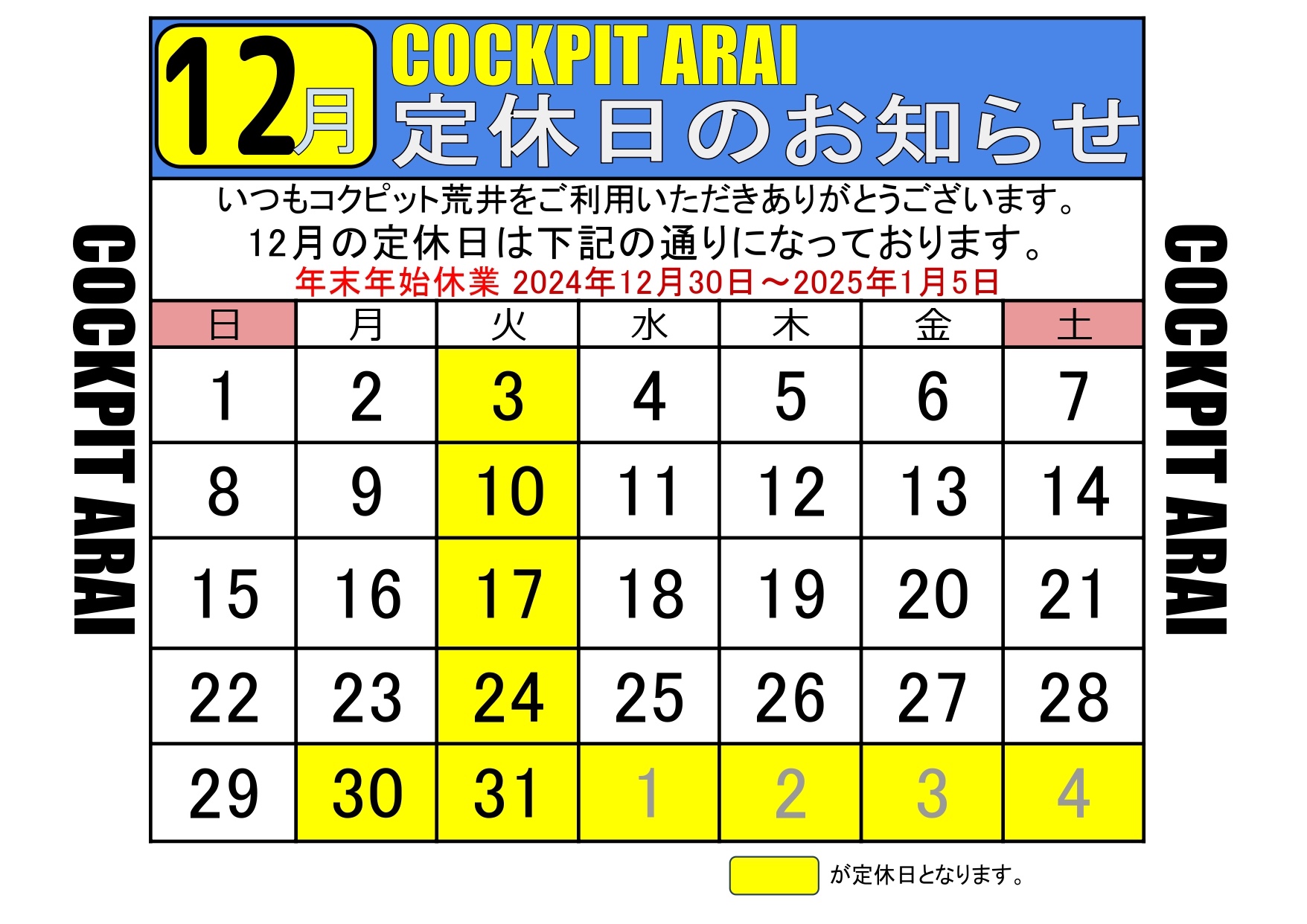 ⬇︎ ⬇︎ ⬇︎ ❄︎ 12月の営業日カレンダー ❄︎ ⬇︎ ⬇︎ ⬇︎