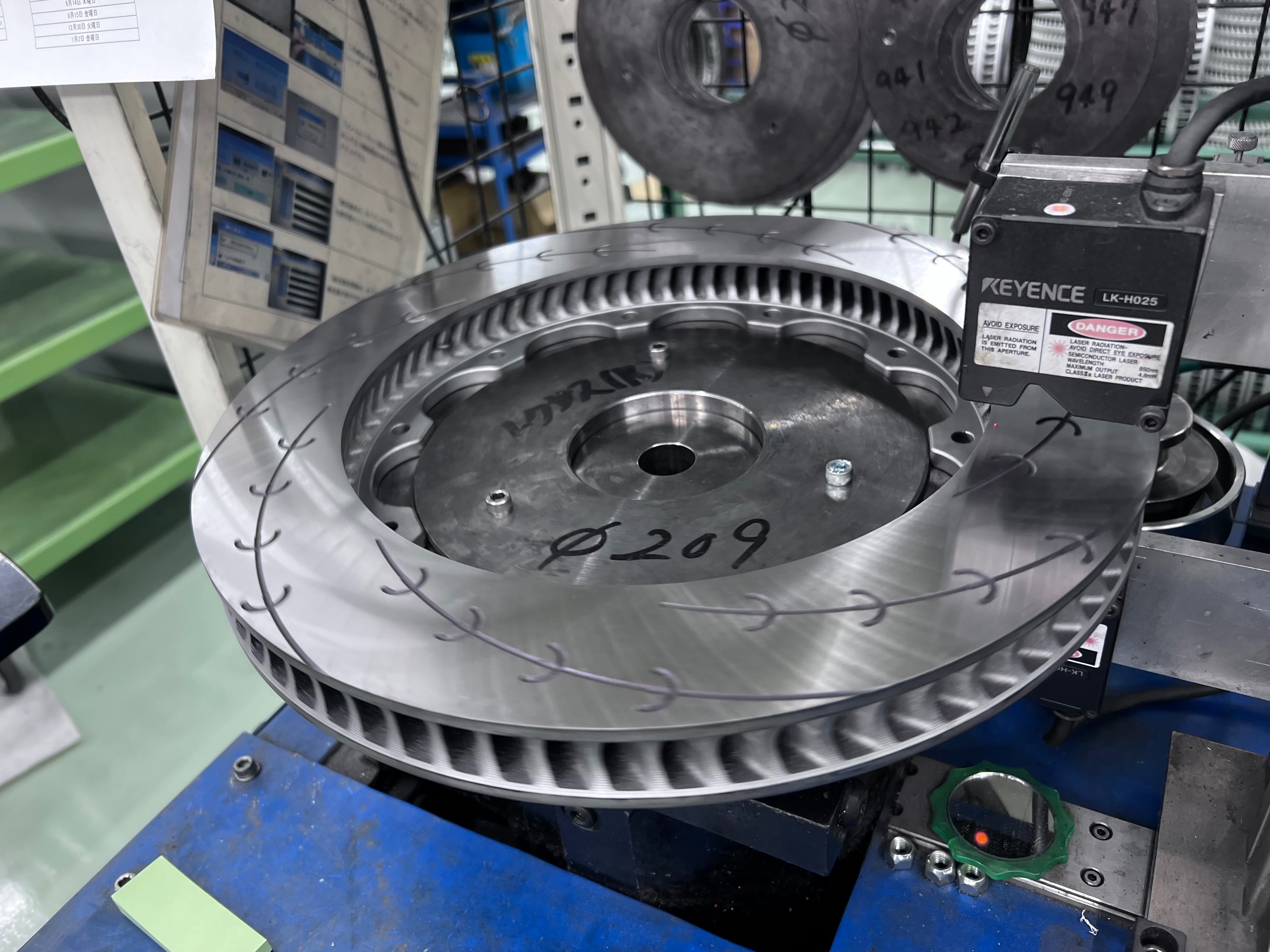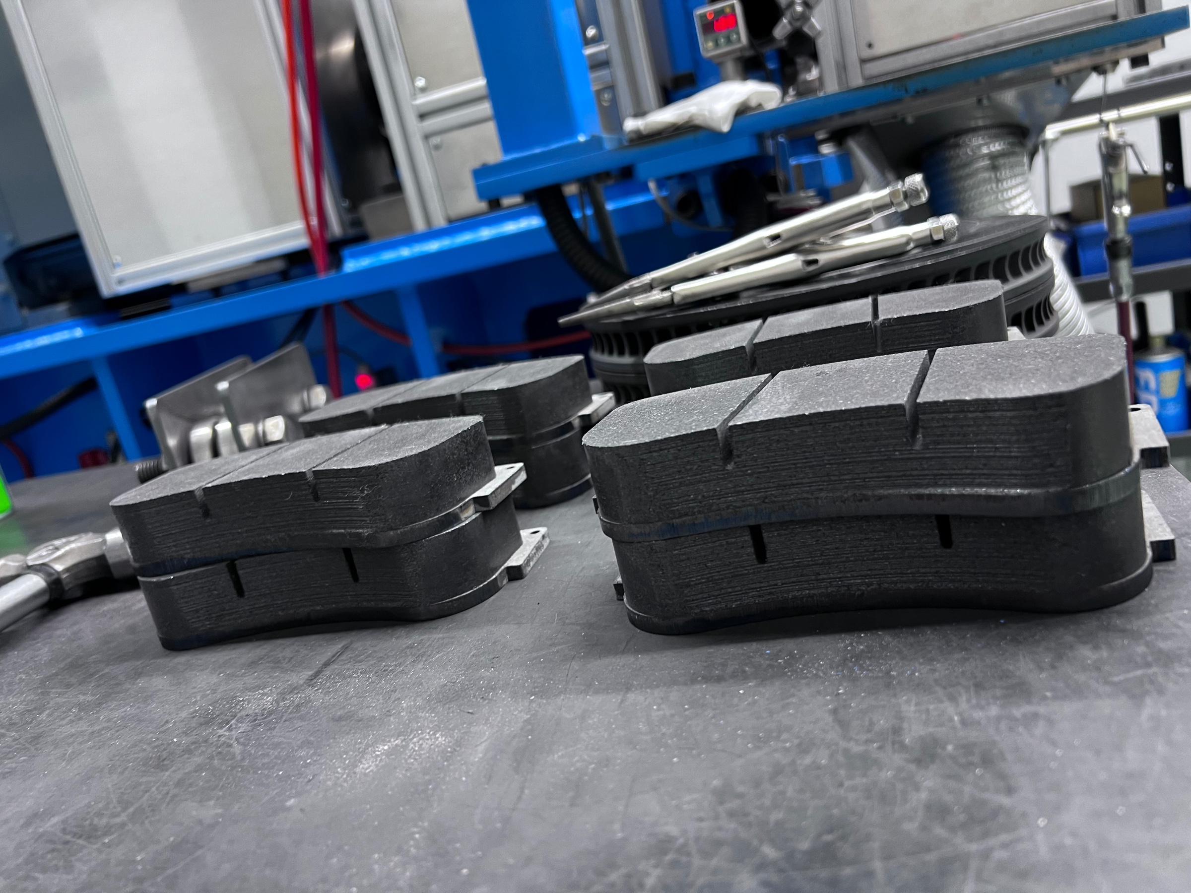 を行っています(※レース車両・レーシングカーではすぐに性能を発揮しなければいけないので、工場で機械にパッド&ローターをセットし高温で当たり付けを行い、それから出荷する工程となっています。)
