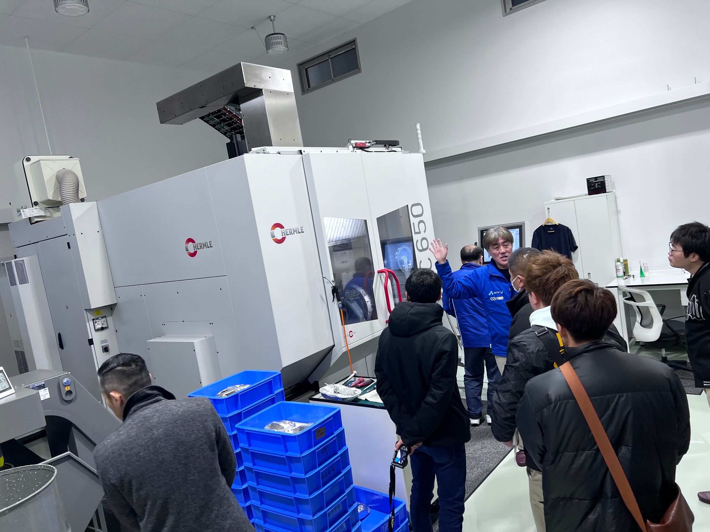 エンドレス井出さんの奥にありますのが例の 『 5軸加工マシン 』大きい機械ですね!