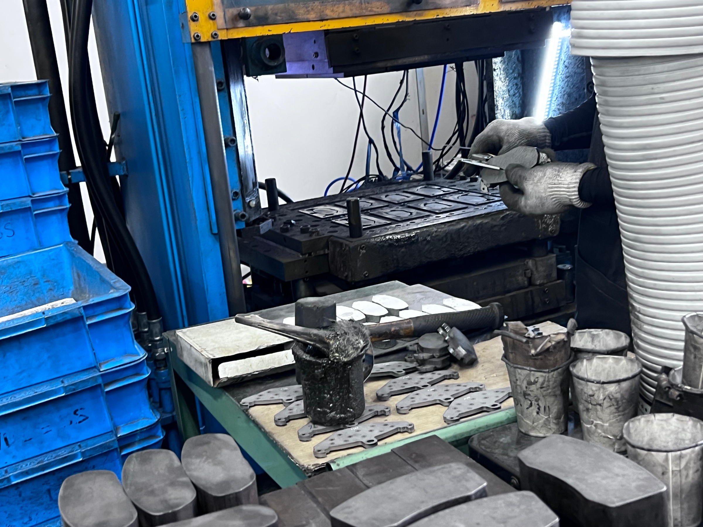 こちらでは市販のブレーキパッドを製造しています。