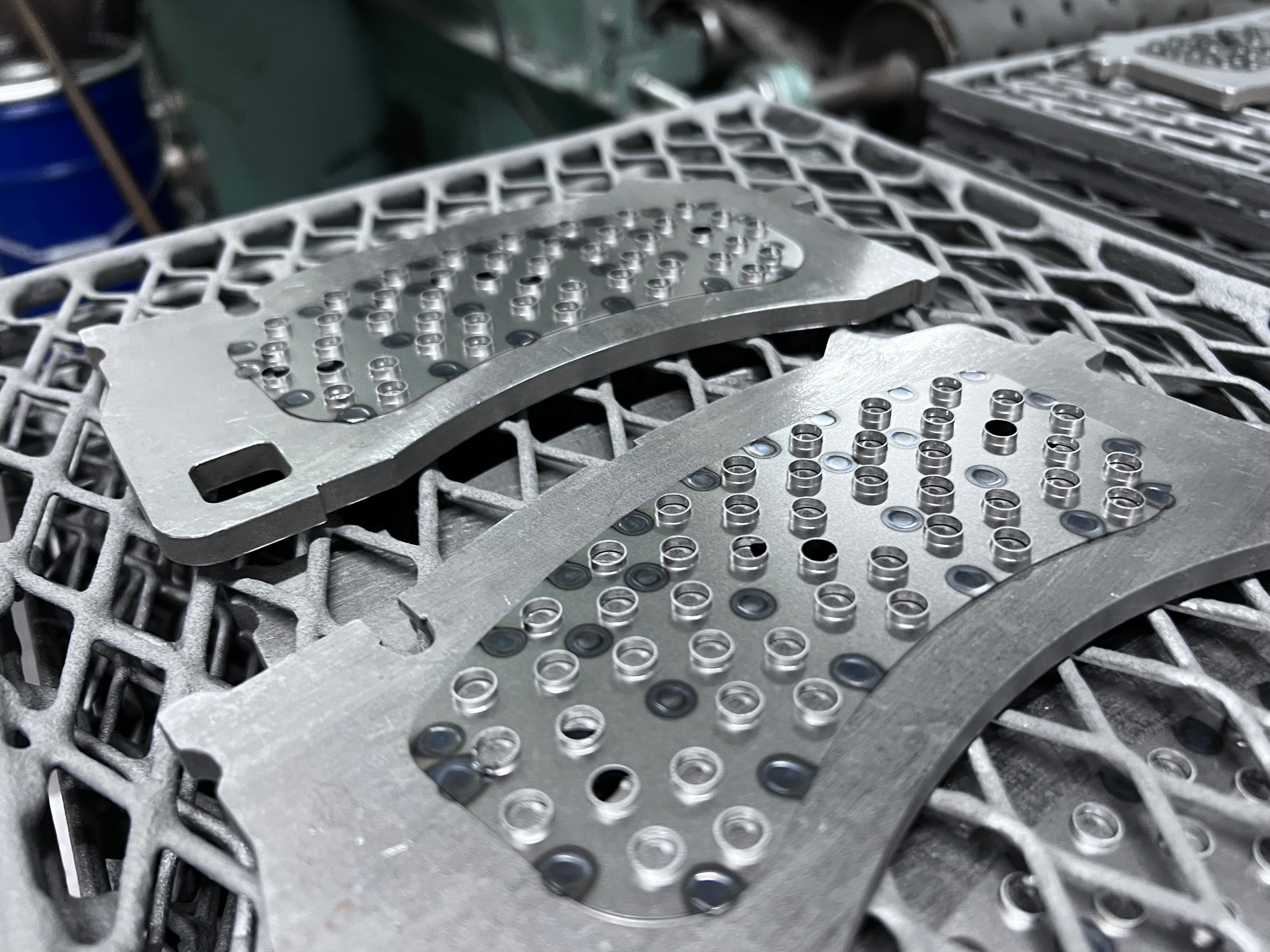 (※バーリングプロセスとは・・・ブレーキパッドをつなぐ台座と摩材のところに入る凸凹した材料で、接地面積を増やしたり、摩材との剥離を抑制してくれるサーキットパッドに無くてはならない存在だと思います!)