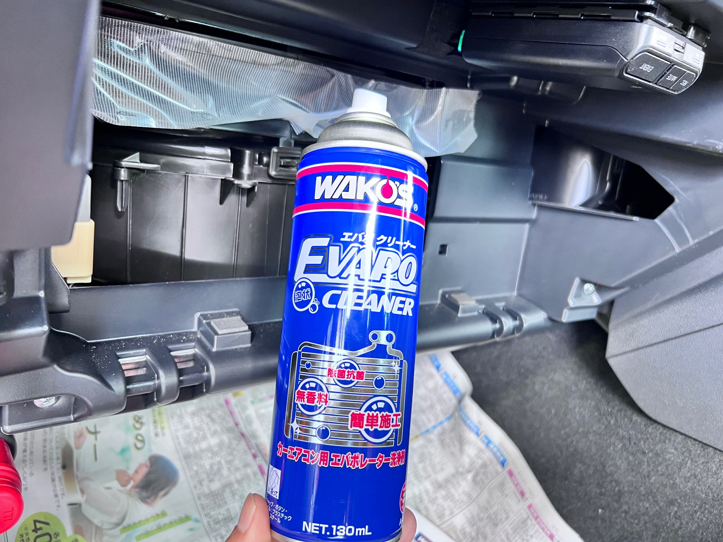グローブボックスを戻し、エアコン風量を徐々に上げて作業終了となります\_(・ω・`)