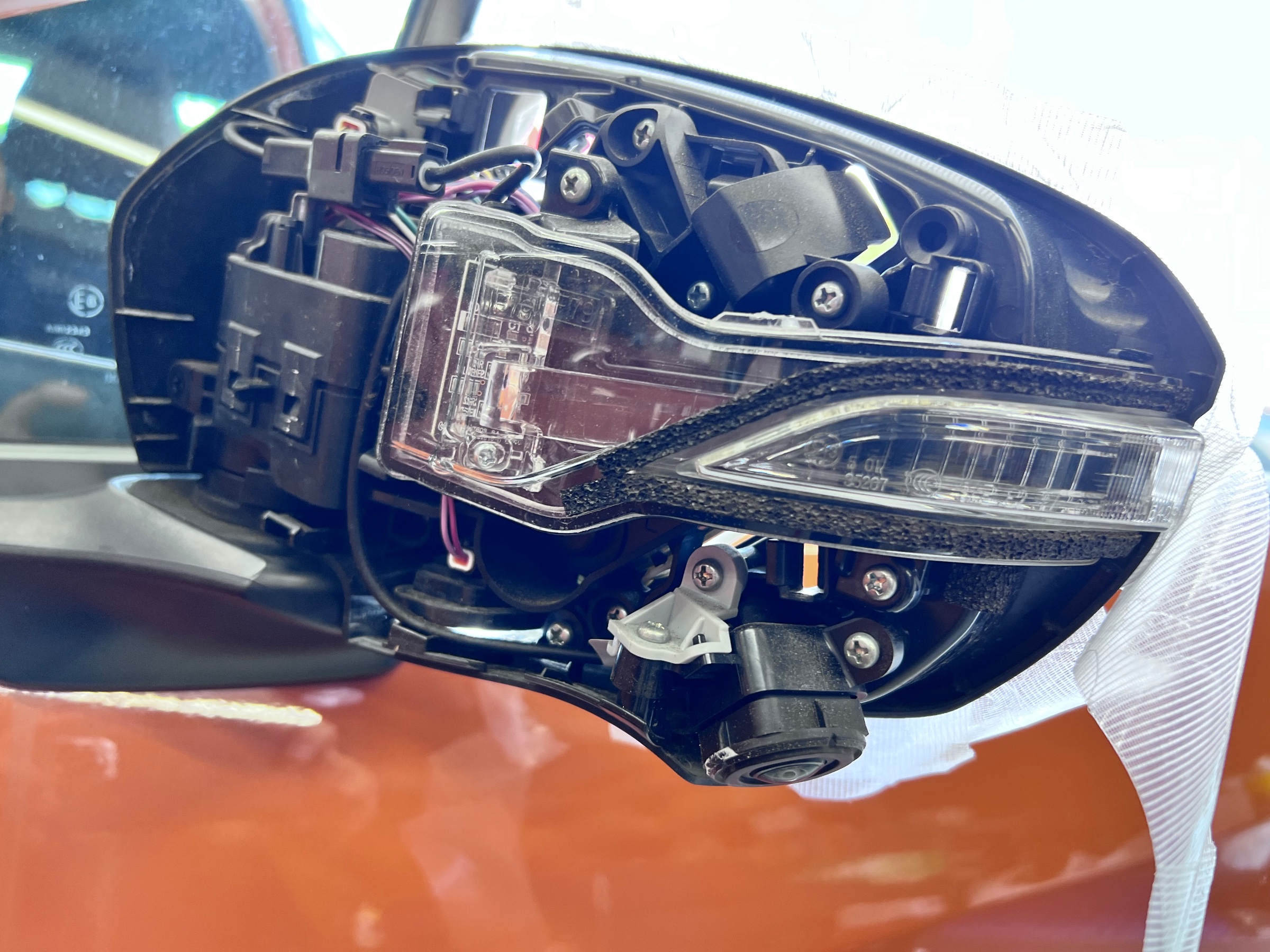 キズに注意しながらミラー・カバー・ウインカー配線を進めます。