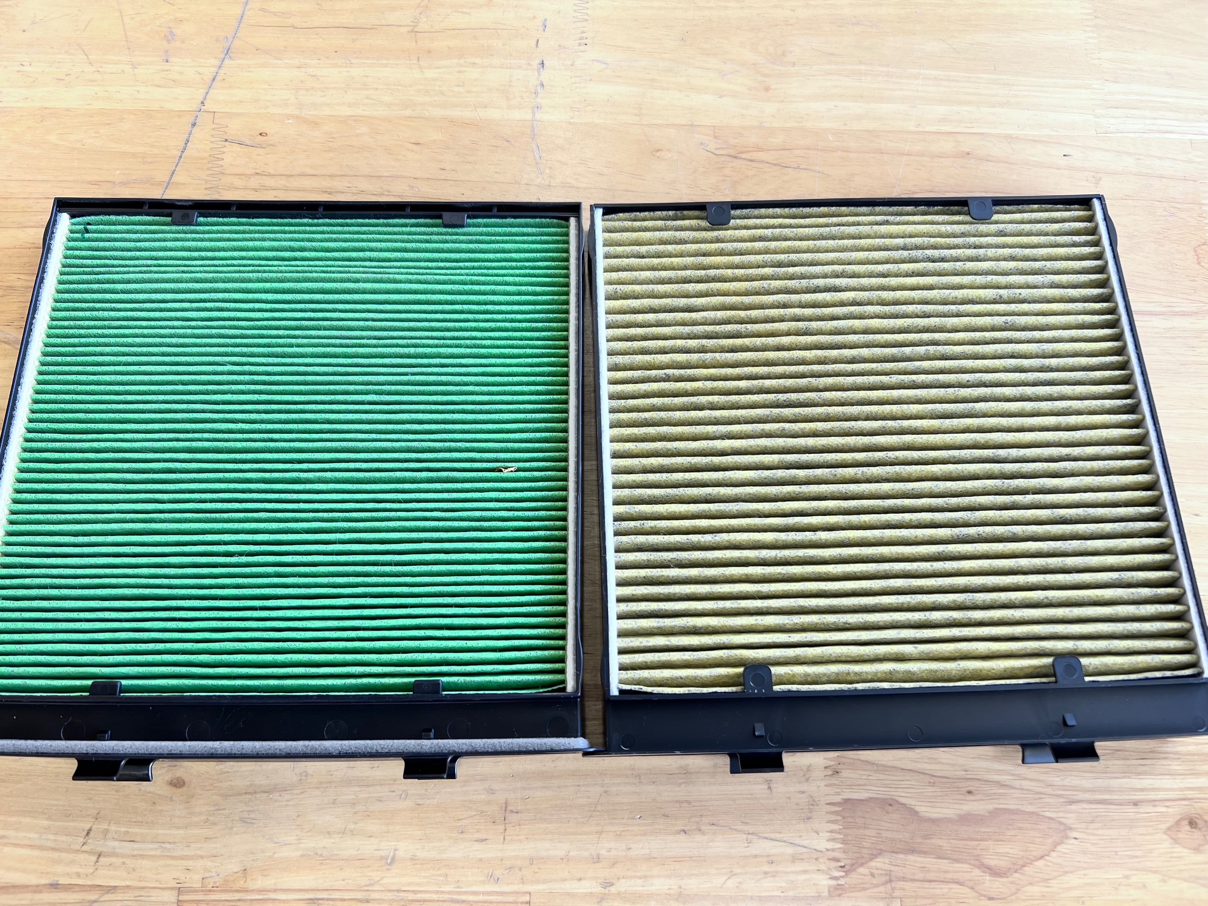取り外した、エアコンフィルターもまだそこまで汚れてはいませんが、