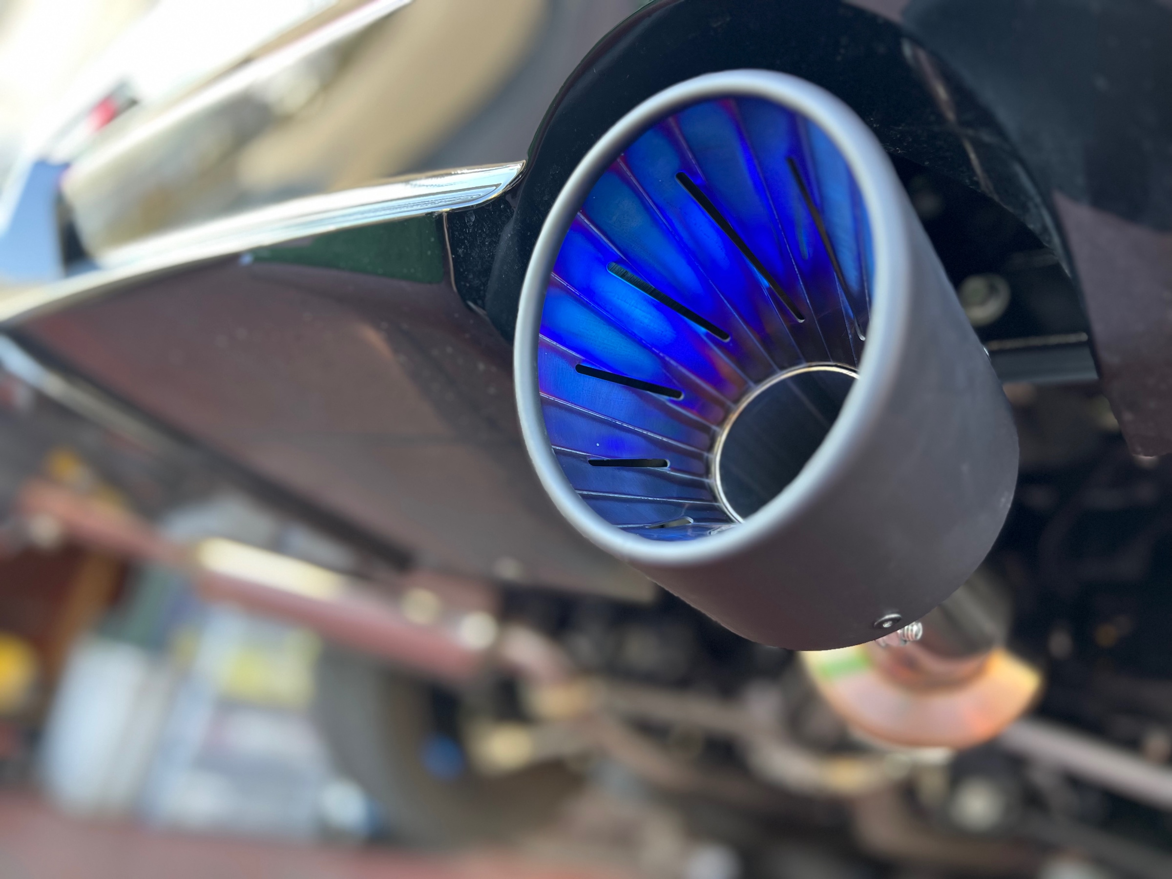 新しいマフラーは、左右の出面や角度がミリ単位で印象を変えます。