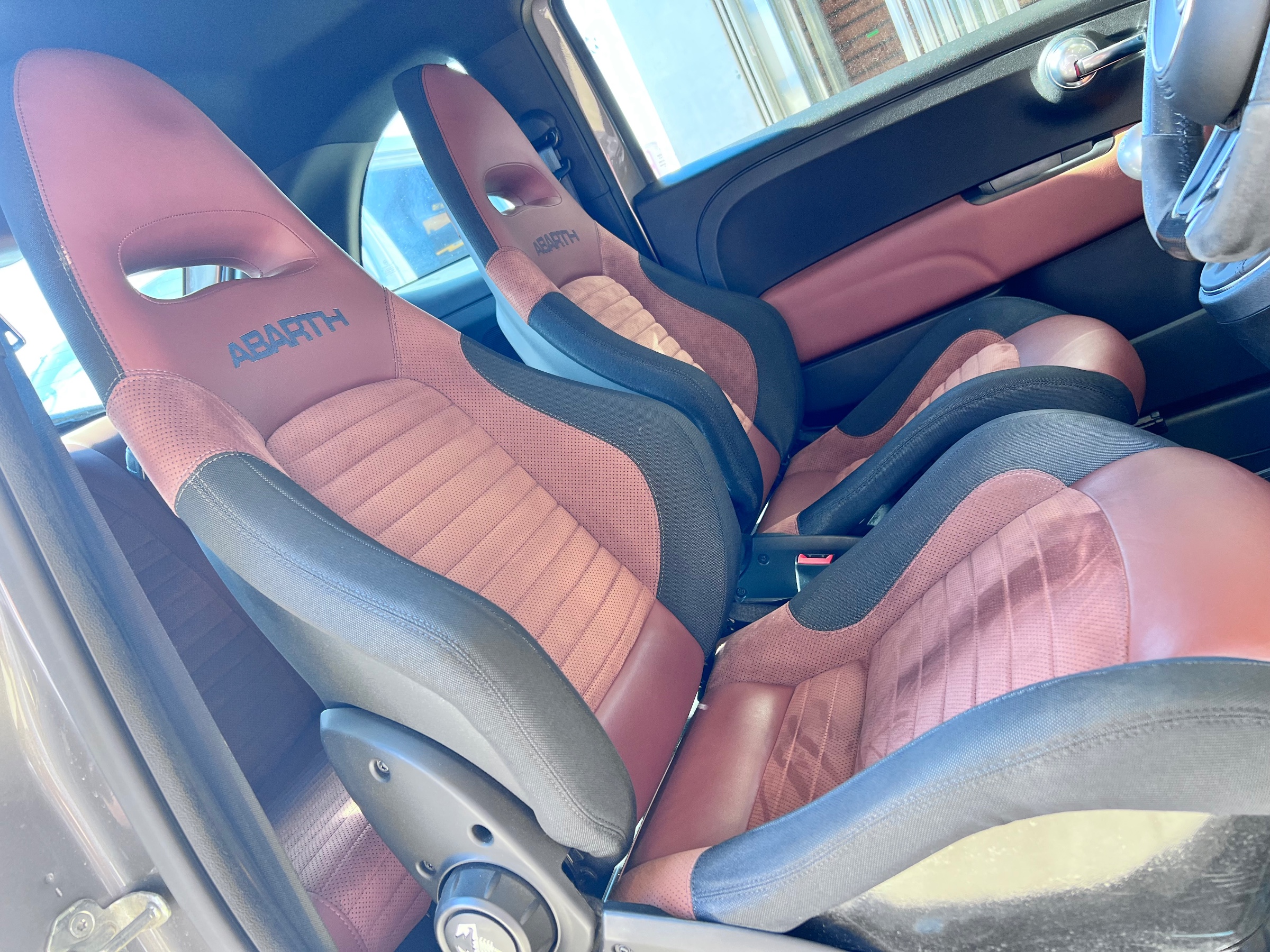 アバルトのタイトなコクピットにも、計算されたシェル形状でジャストフィットします!