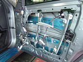純正オーディオのままで音質を上げたいということで、お手軽音質アップメニューです。サウンドシャキット『サウンドプロセッサーアンプ』を取り付け低音から高音までかなりの音質アップです。ユニットは助手席前のコンソールに収納、これだけで十分に音質アップなのですが、オーナーさまの意向で、更に運転席と助手席をレアルチルトにてデッドニング加工をいたしました。スピーカーの性能を更に引き立てることになります。