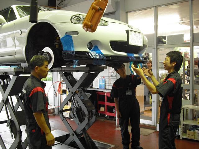 ②続いてロードスター NBに、ガレージベリー フロントリップスポイラー取付です。