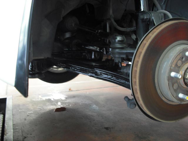 当店では、下回りの洗浄 & 塗装(通常オプション)を、当店標準サービス(週末車検は一部除外)として車検時に実施しております。写真7番と8番、こんな感じできれいにいたしますので、ぜひご利用ください。