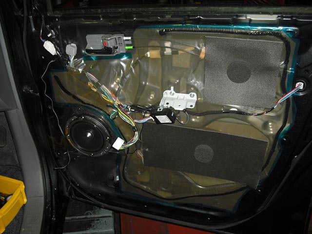 取付車両はトヨタ VOXYで、フロントスピーカーへの施工です。