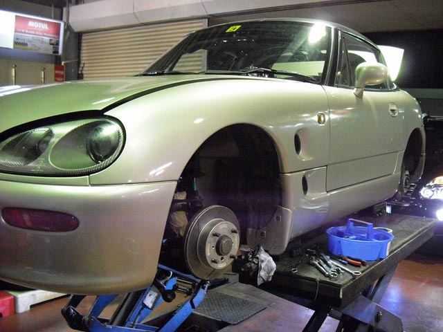 日本の名車、カプチーノのフルブッシュ交換です。